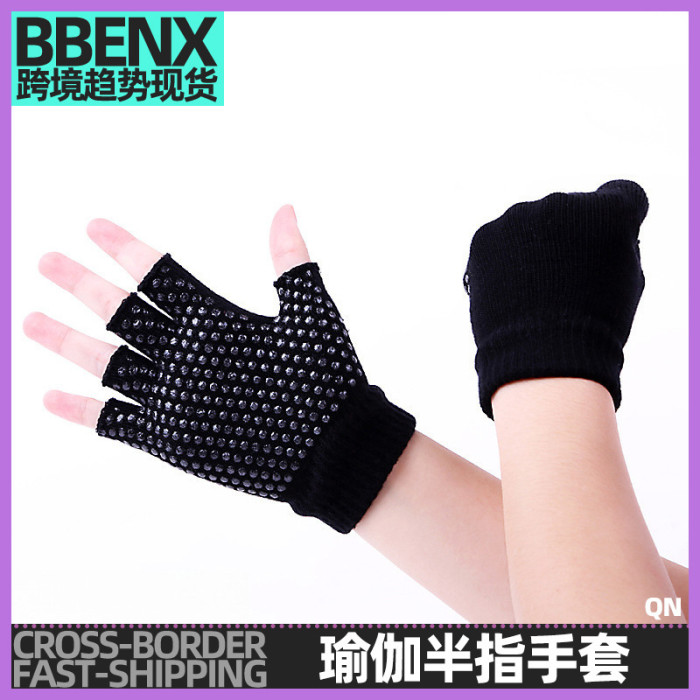 半指手套防滑點膠棉質瑜珈手套空中瑜珈訓練耐磨透氣騎行健身手套