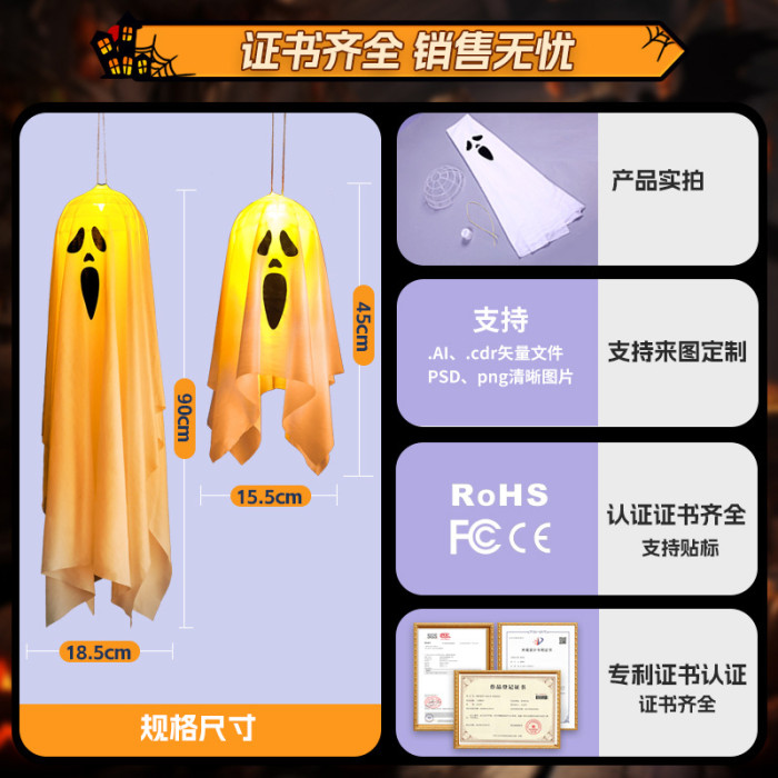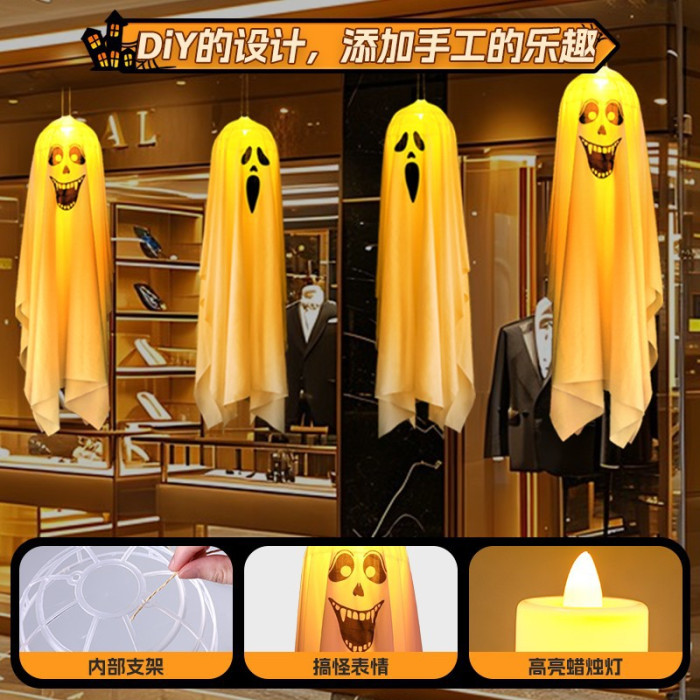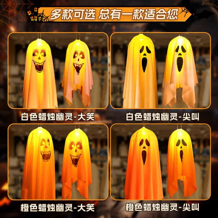 萬聖節發光蠟燭幽靈掛飾led彩燈鬼節恐怖氛圍庭院布置裝飾道具