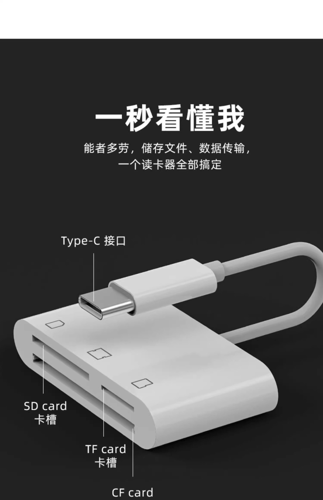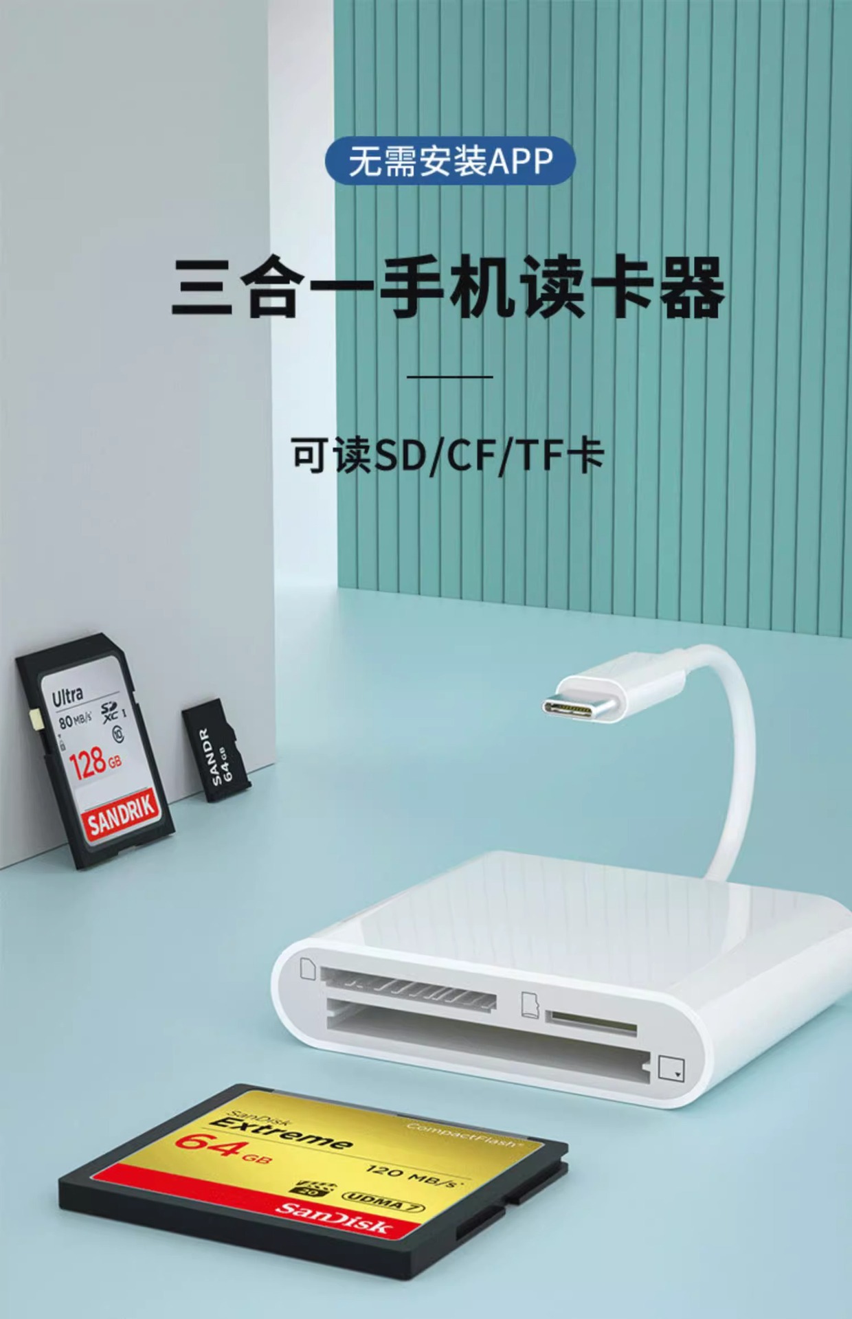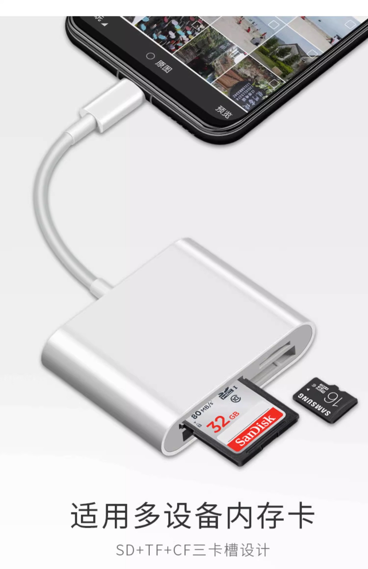 | 顔色 | 適用蘋果+TypeC+USB掛繩款【雙頭CF-3合1】讀卡器【CF卡/TF卡/SD卡】手機*電腦兩用 |