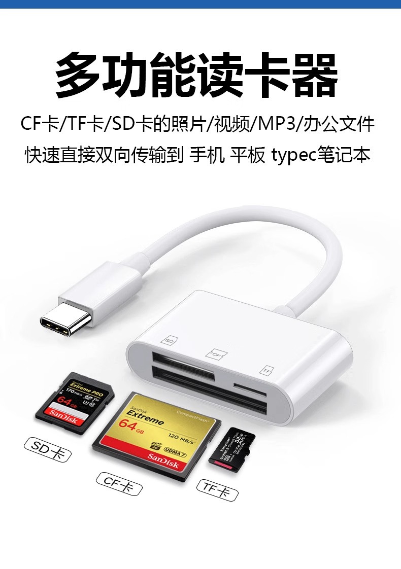 cf卡讀卡器多功能三合一相機SD儲存卡TF內存卡TypeC口手機OTG電腦