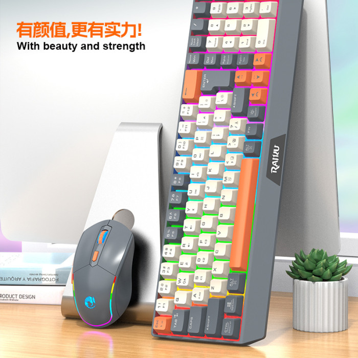 雷魁R908無線藍牙辦公娛樂雙模彩色鍵鼠套裝鍵盤高顔值辦公套裝