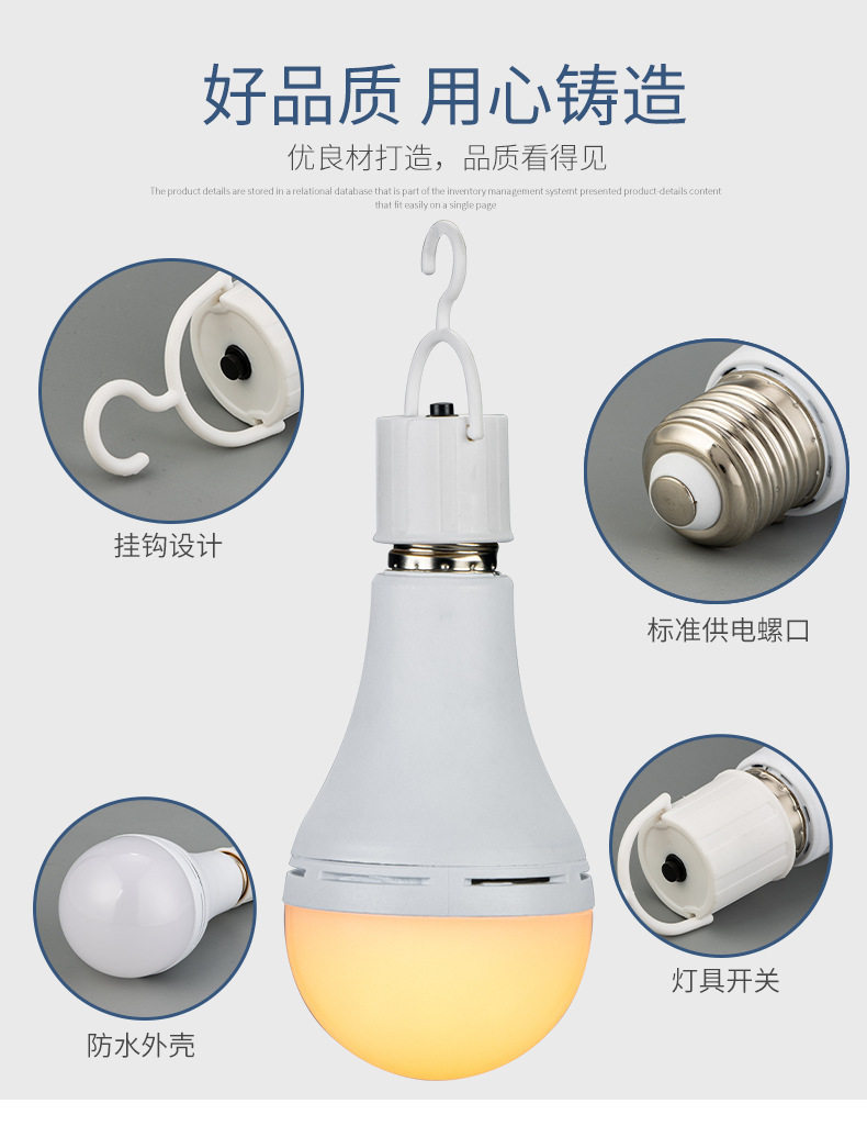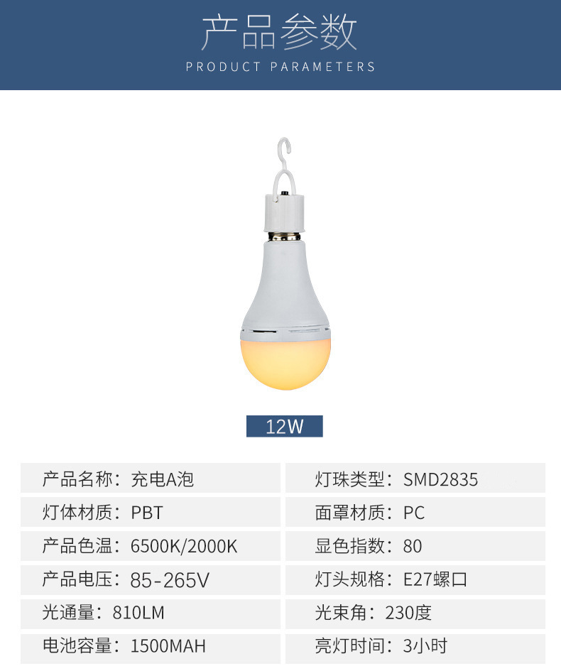 戶外LED超亮12W 應急燈停電智能E27螺口客廳夜市地攤樓梯露營照明