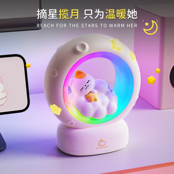 創意新品可愛氛圍燈女生生日禮品網紅擺件摘星攬月拍拍小貓小夜燈