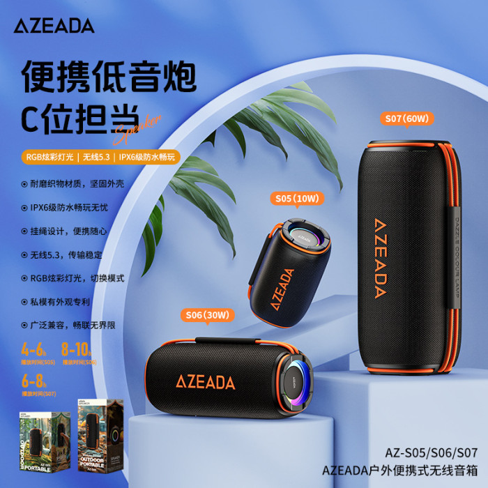 AZEADA戶外可攜式無線音箱IPX6級防水藍牙5.3旅行RGB燈光音箱