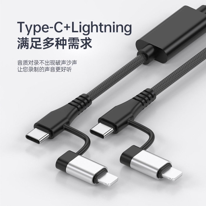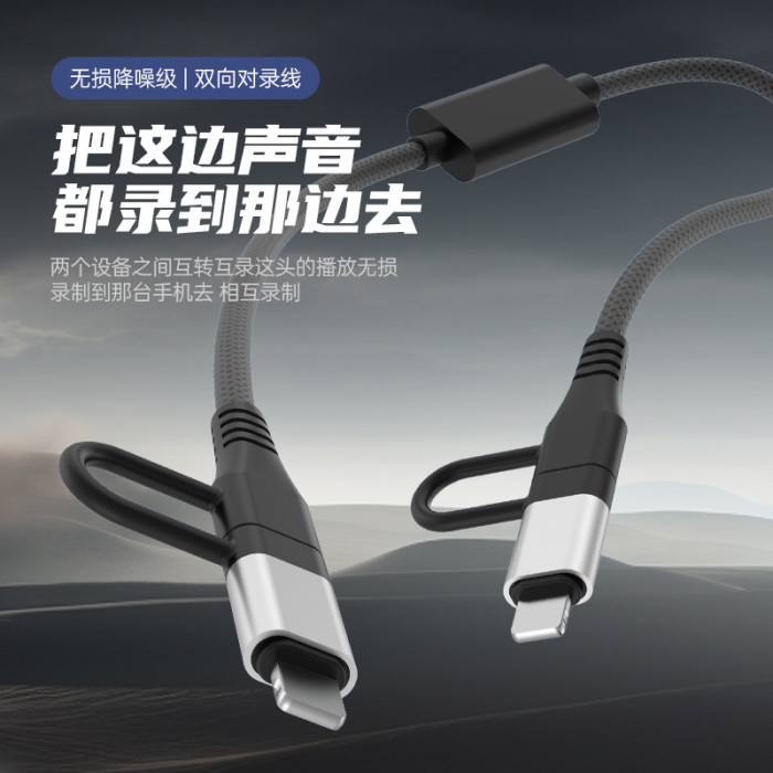 雙向對錄線兩頭Type-C接口雙頭Lightning插頭手機錄音編織內錄線