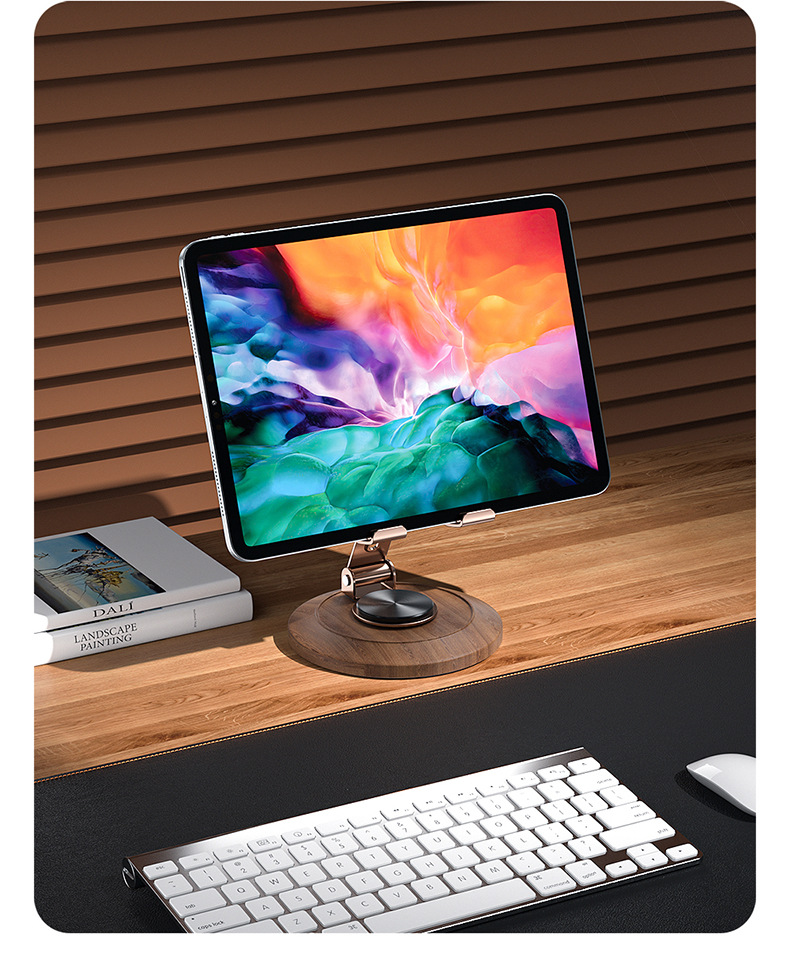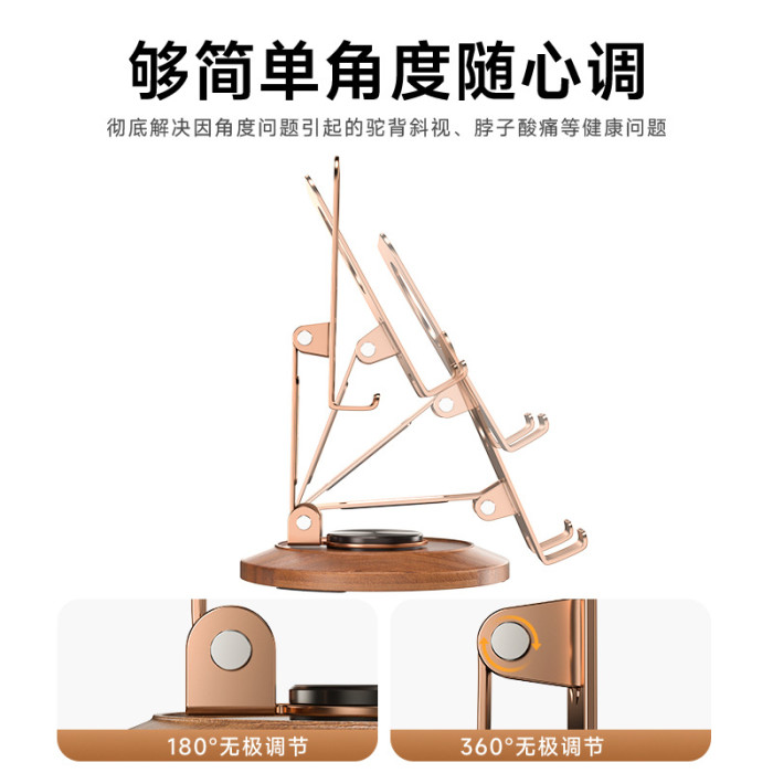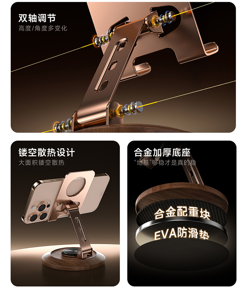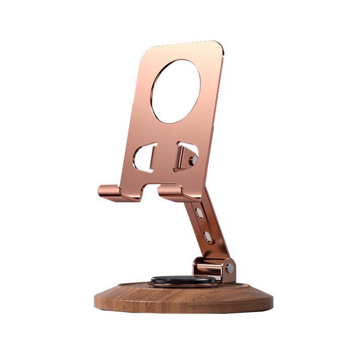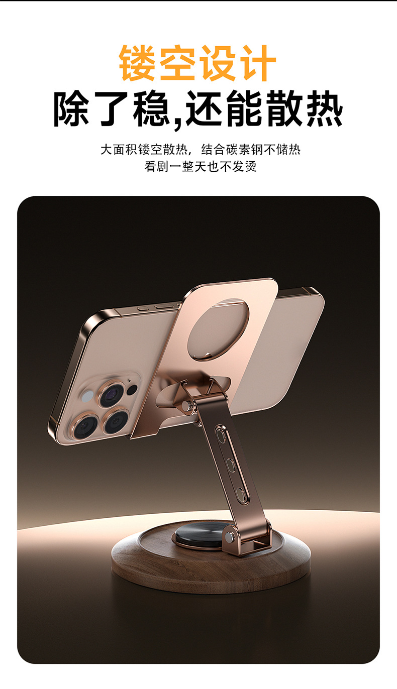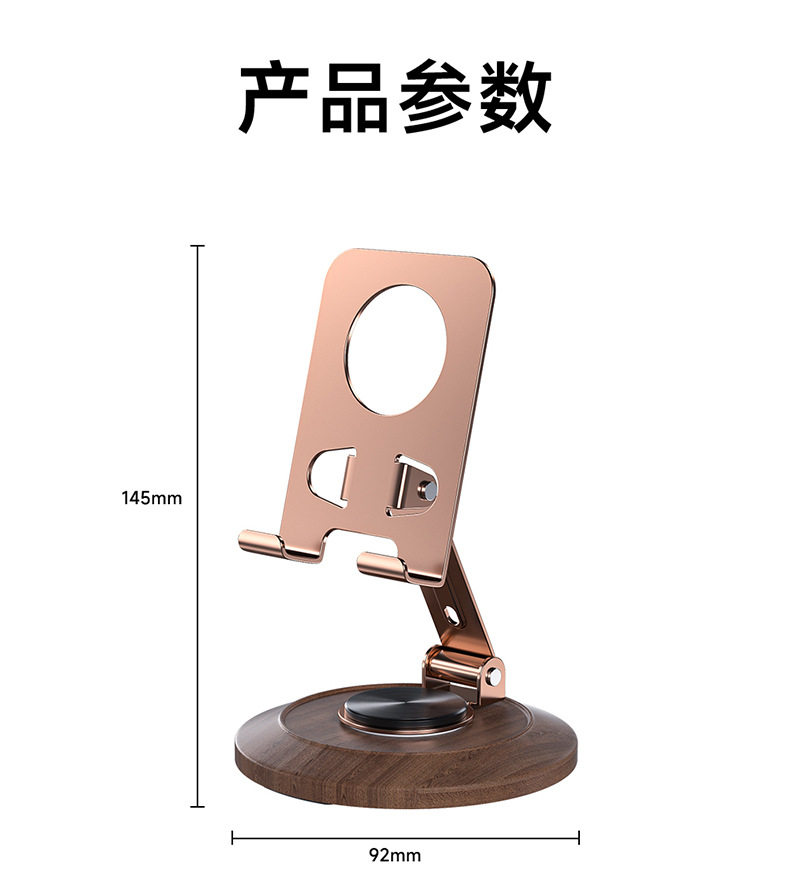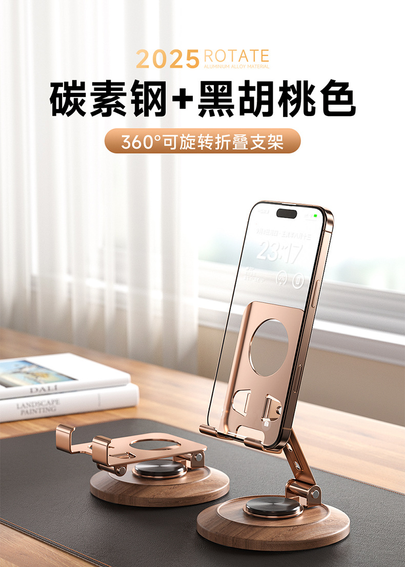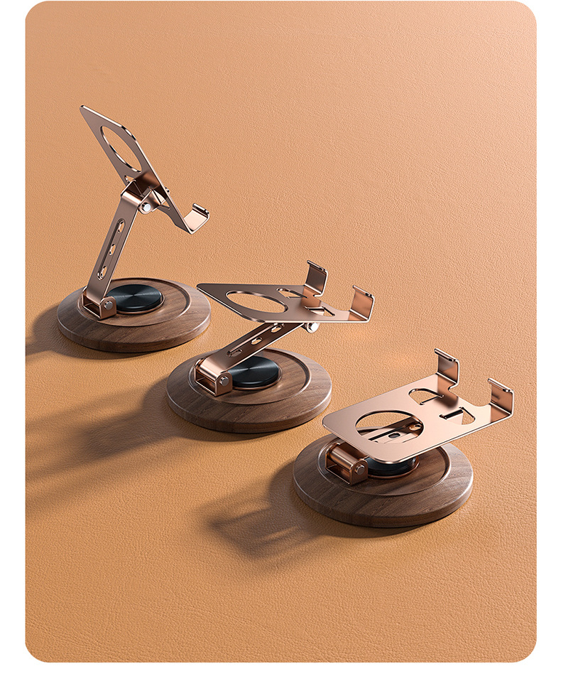 胡桃木底座金屬手機殼支架旋轉可調節桌面懶人專用可攜式支撐