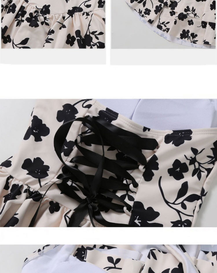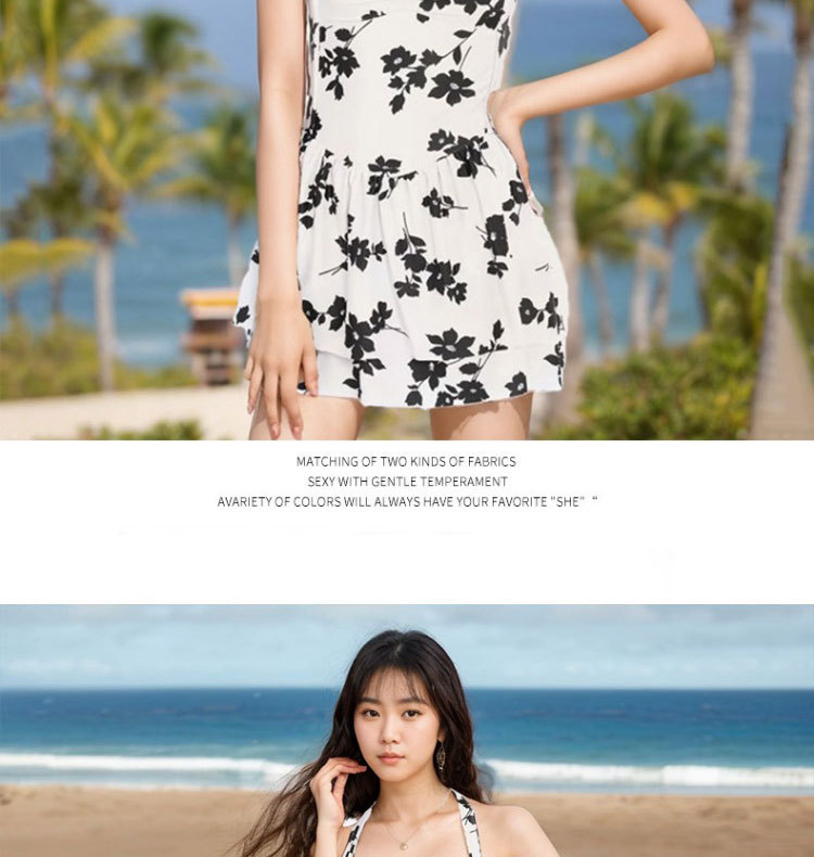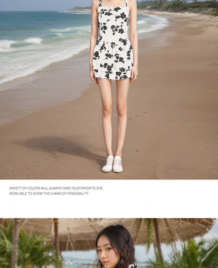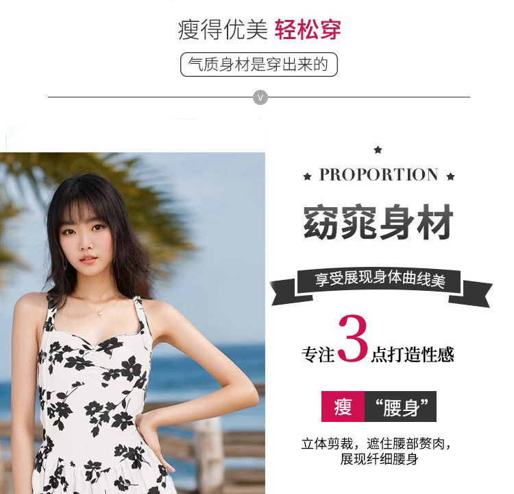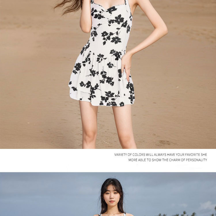 泳衣女純欲ins 風虞美人連體裙式小胸聚攏吊帶式度假溫泉沙灘泳衣