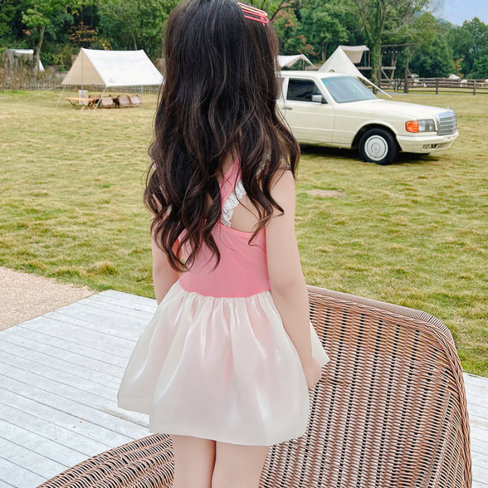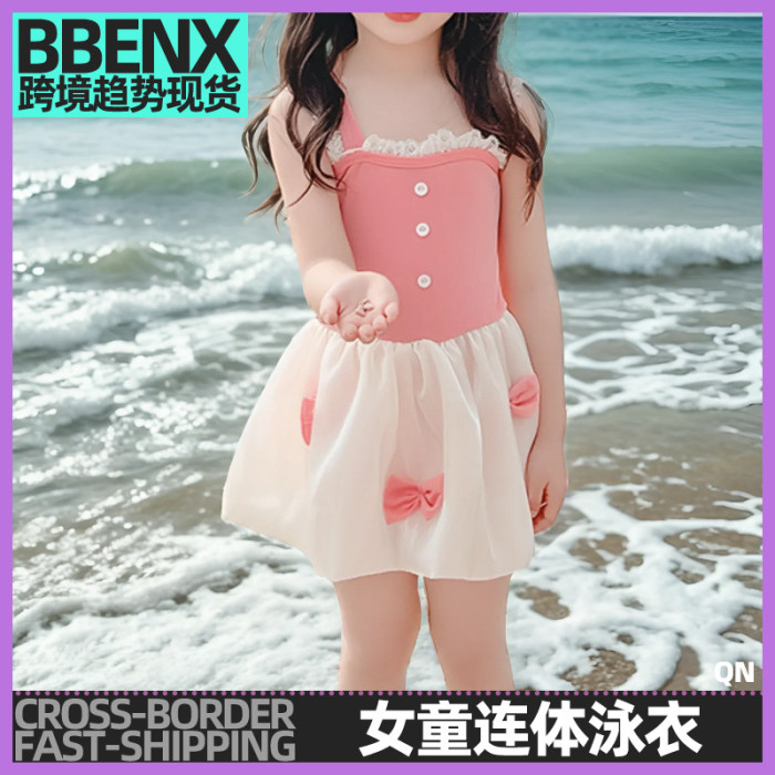 兒童泳衣女洋氣連體中小童可愛蓬蓬裙連體泳衣公主裙式連體遊泳裝