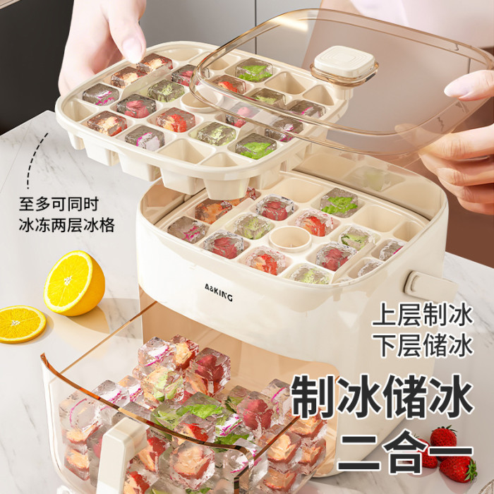 冰塊膜具食品級按壓冰格家用冰箱凍冰塊模具製冰神器大容量儲冰盒