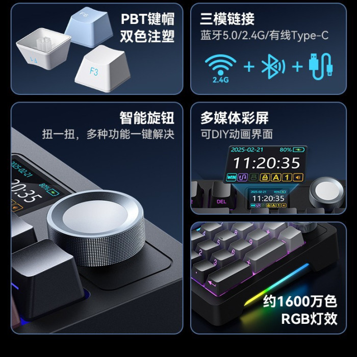 三巨SG99pro三模無線藍牙帶顯示屏客製化熱插拔機械鍵盤側刻漸變