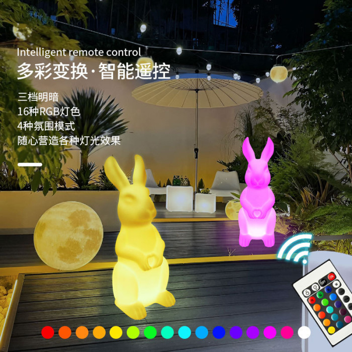 新品派對活動節日裝飾復活節塑膠創意發光兔子戶外庭院擺件燈