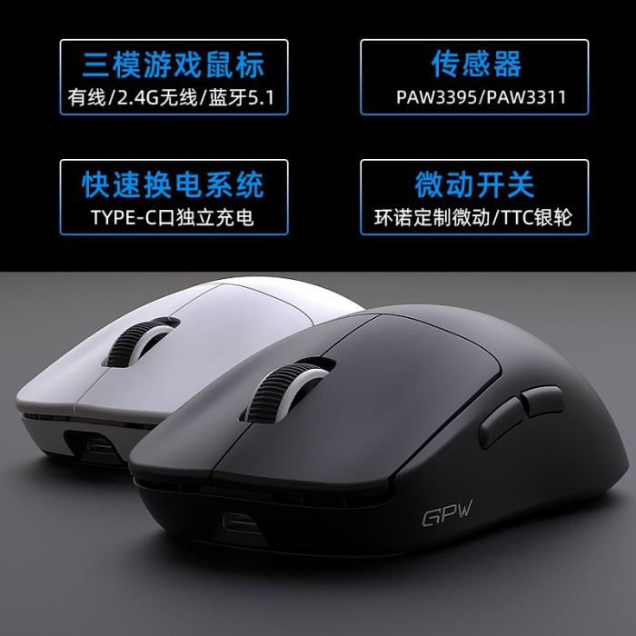 龍衛士G5三模無線滑鼠輕量化PAW3311電競遊戯藍牙有線筆電滑鼠