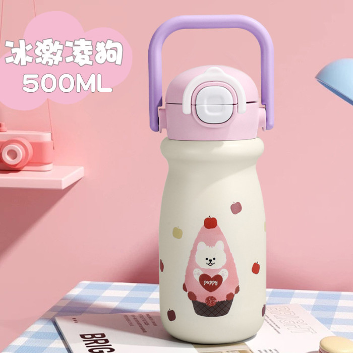 卡通小奶壺不鏽鋼可攜式水壺高顔值女吸管保溫大容量水杯可攜式拎拎壺
