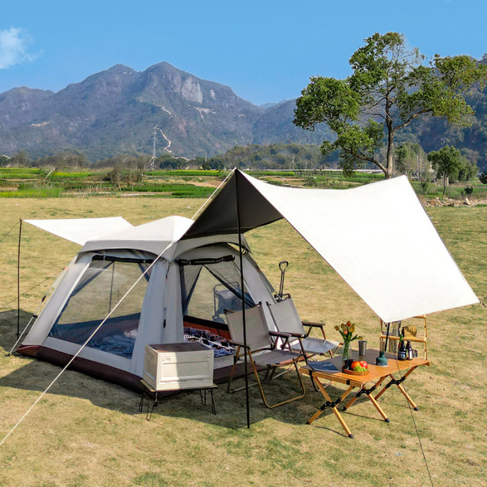 戶外新款四角帳篷加天幕二合一黑膠銀膠營地天幕露營帳篷全自動