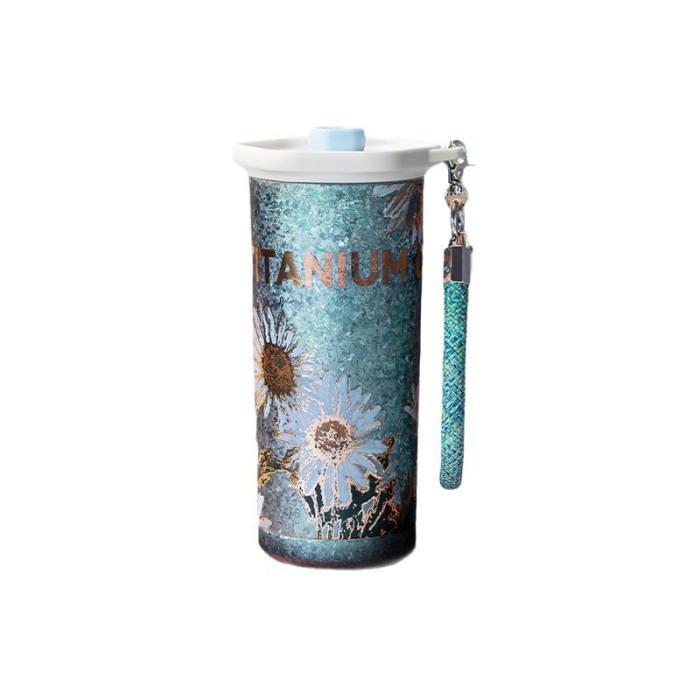 大卡純鈦咖啡保溫杯女士雙飲水杯高顔值車用可攜式帶提繩保冷純鈦杯