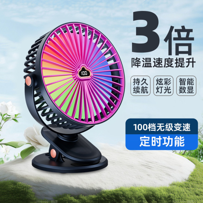 100檔數顯夾子風扇學生宿舍床公室桌面usb續航充電免打孔掛牆壁