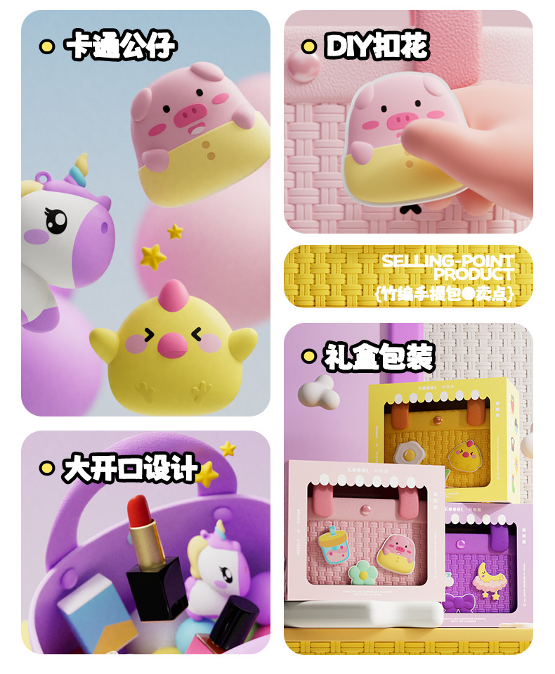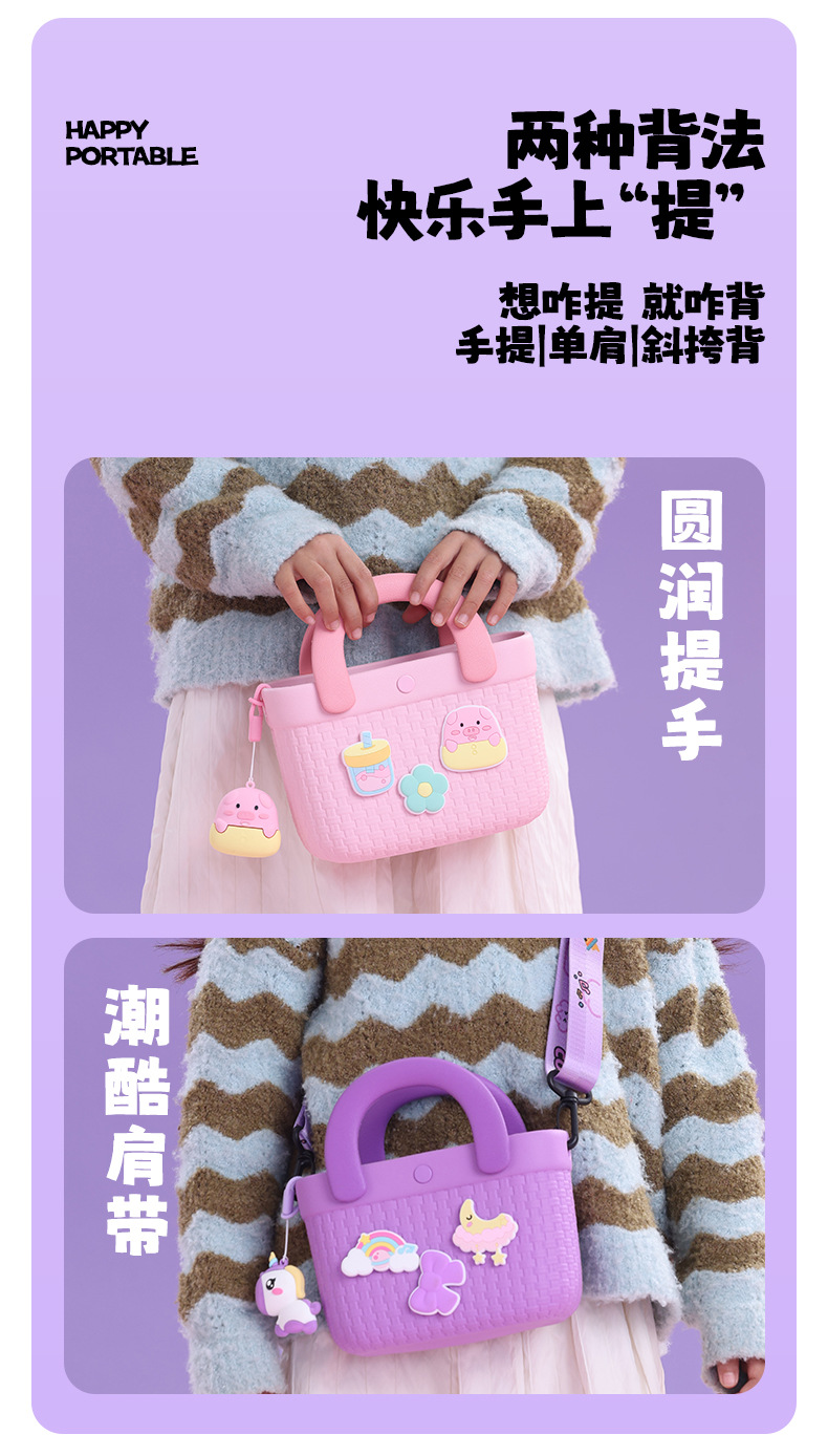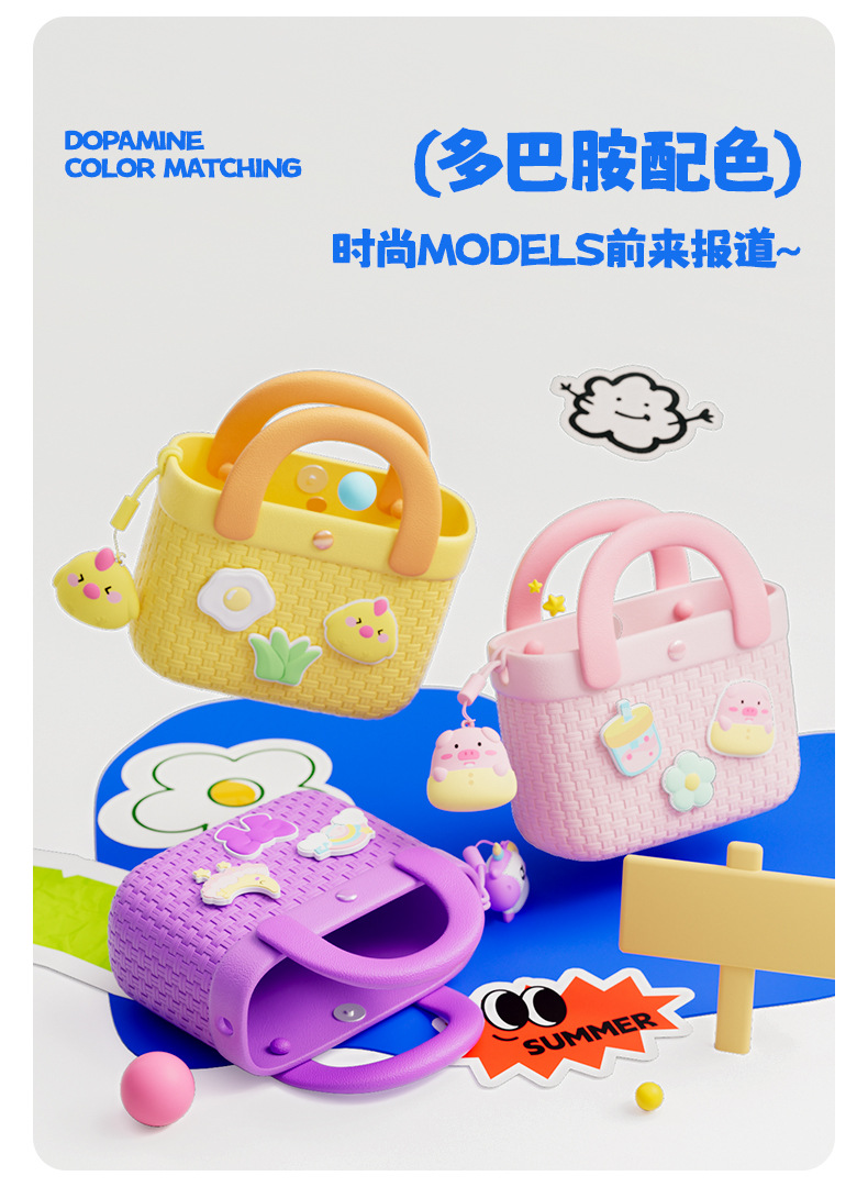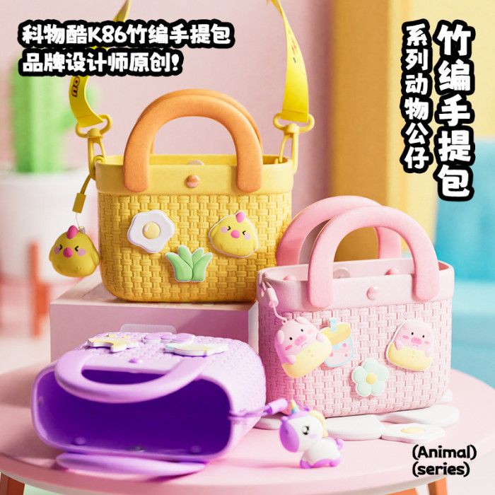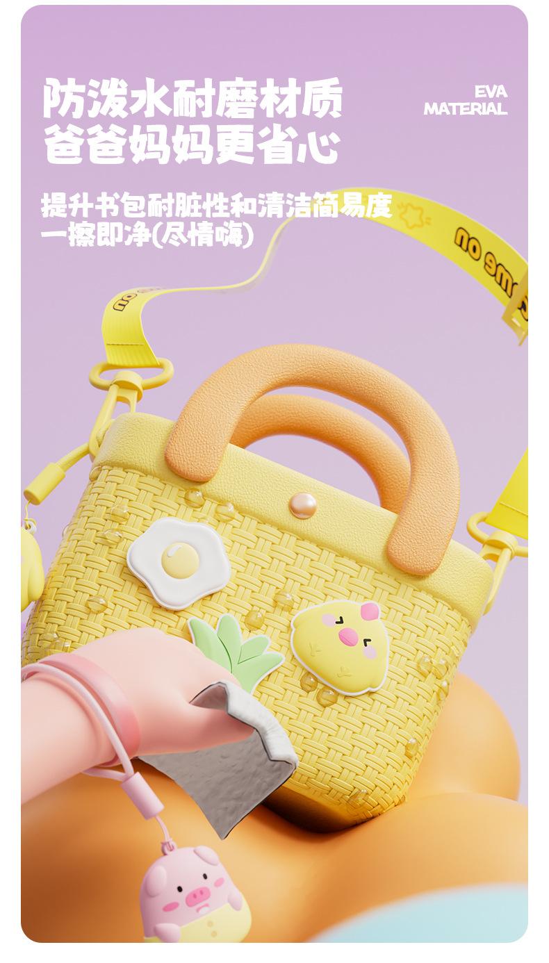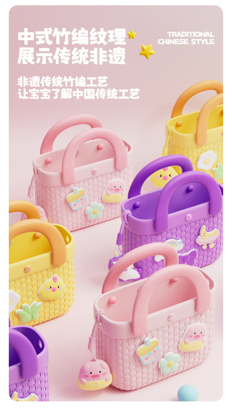 新款兒童斜後背包包女童可愛卡通零錢包大容量手提包竹編紋理單肩包
