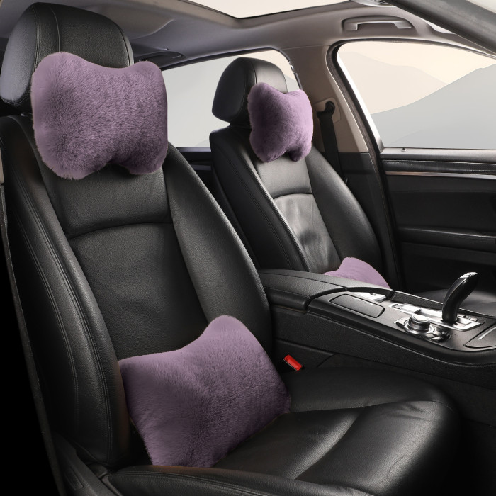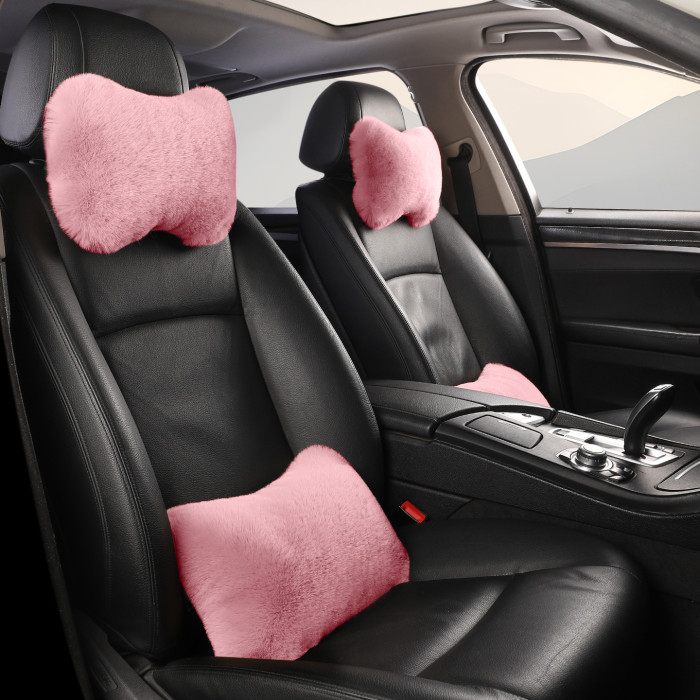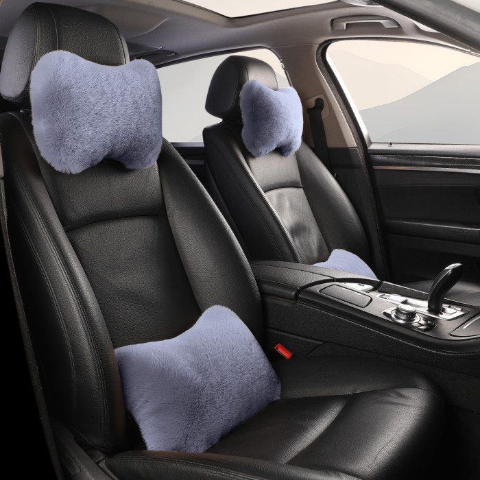 汽車毛絨頭枕腰靠頸枕腰靠護腰仿兔毛絨車用腰靠