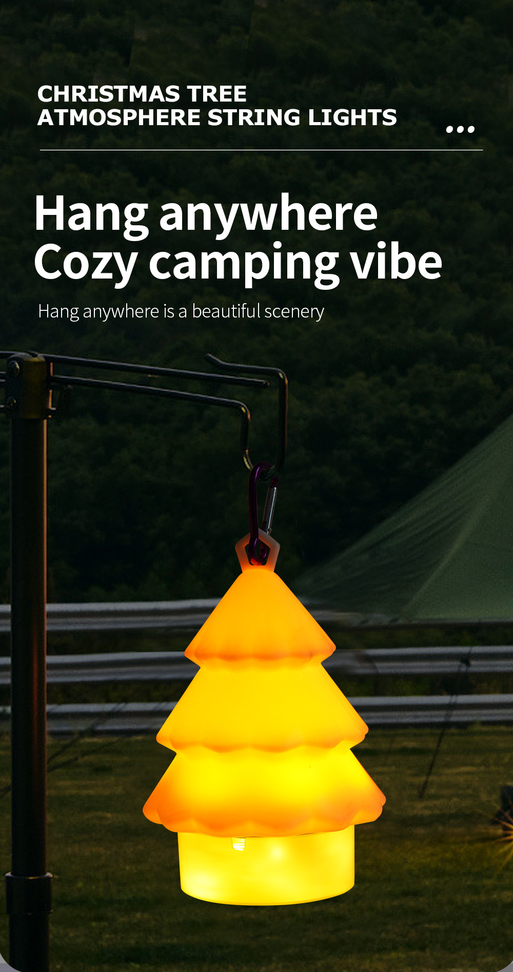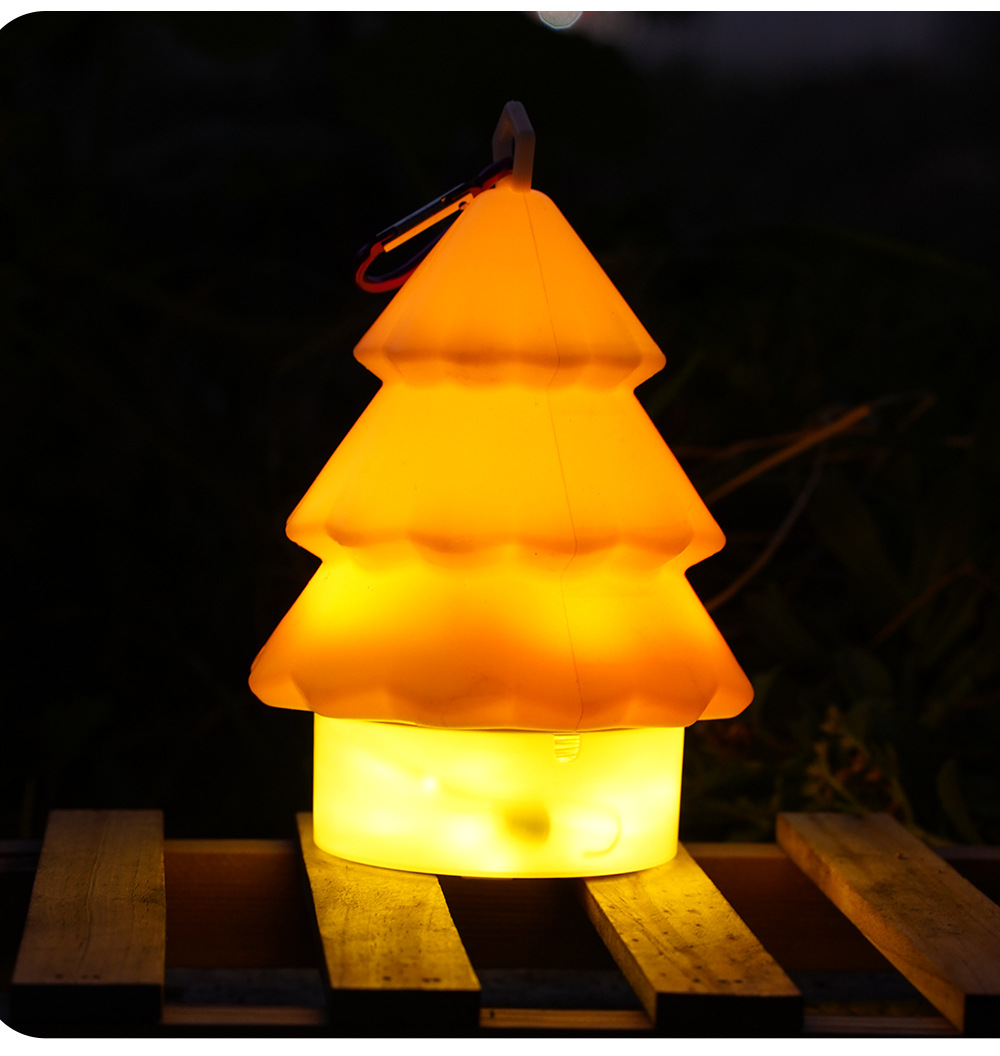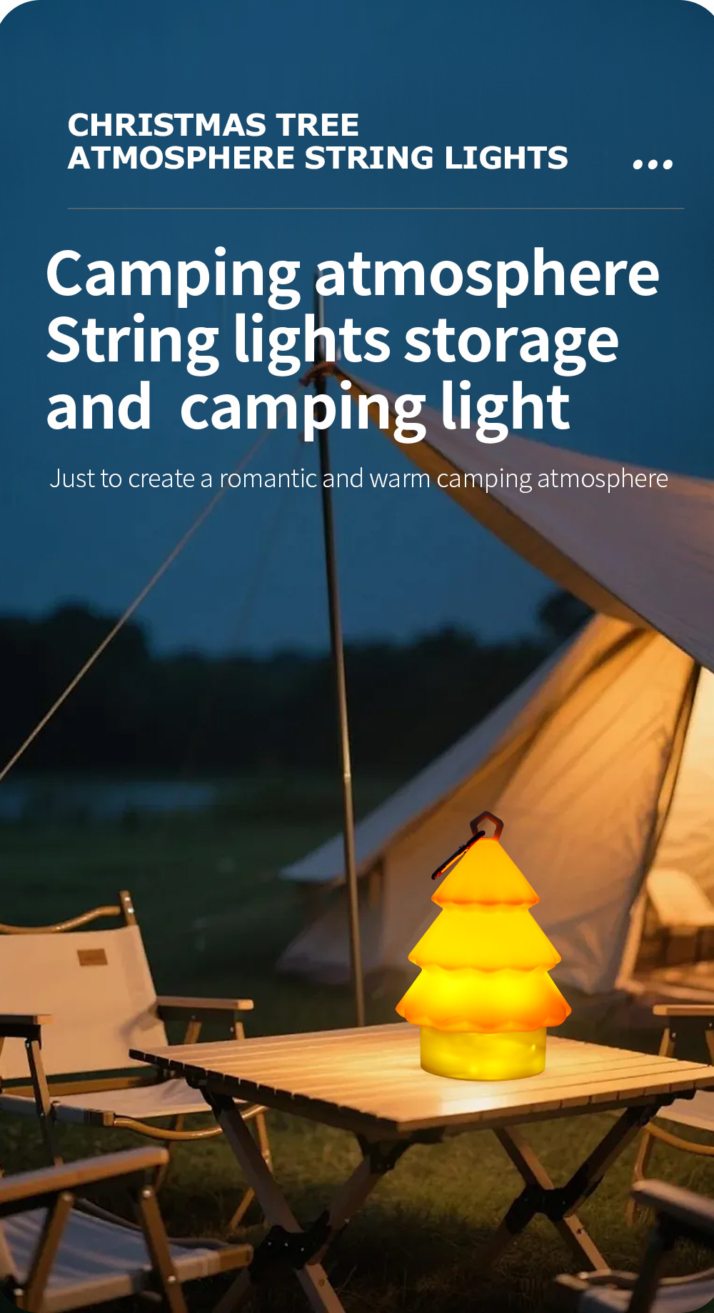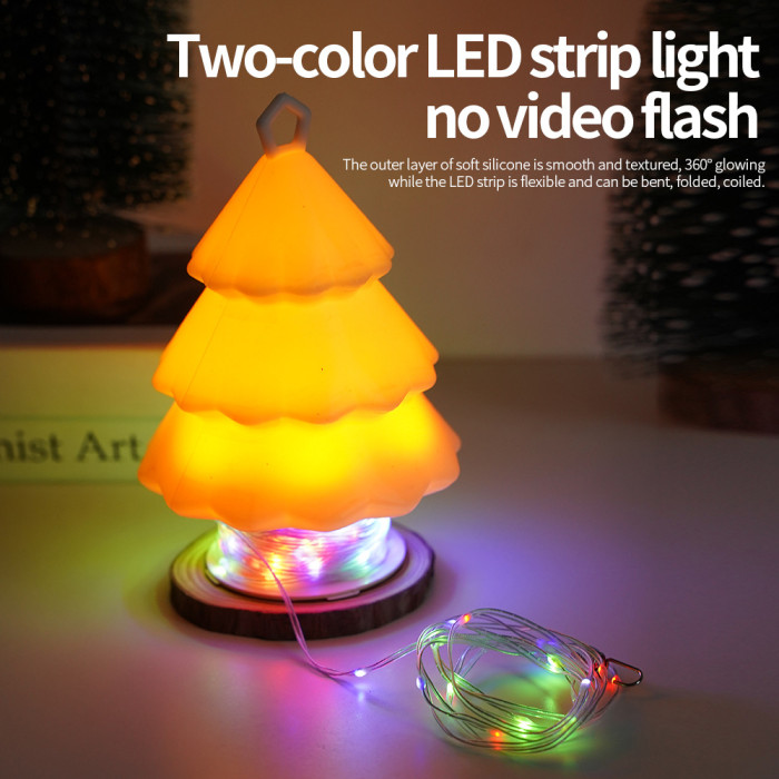 新品聖誕樹矽膠小夜燈可收納10米燈串七彩氛圍燈可充電戶外露營燈