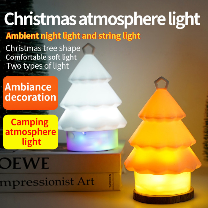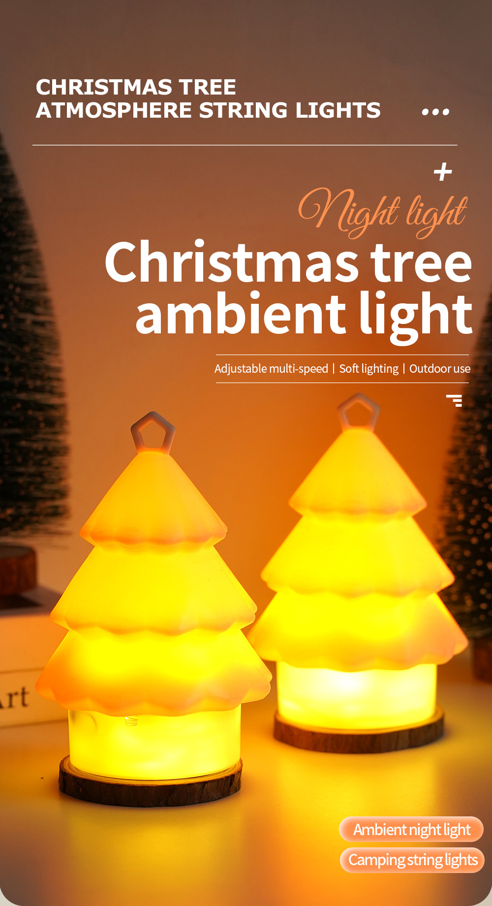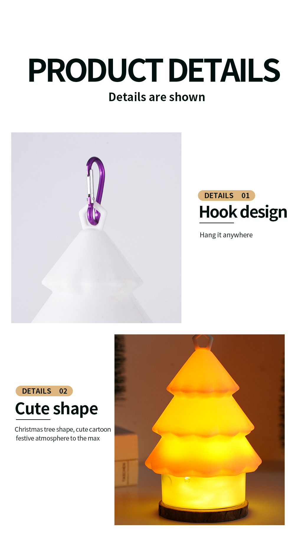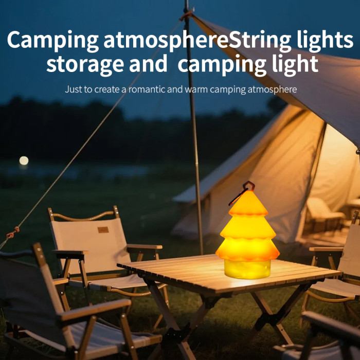 新品聖誕樹矽膠小夜燈可收納10米燈串七彩氛圍燈可充電戶外露營燈