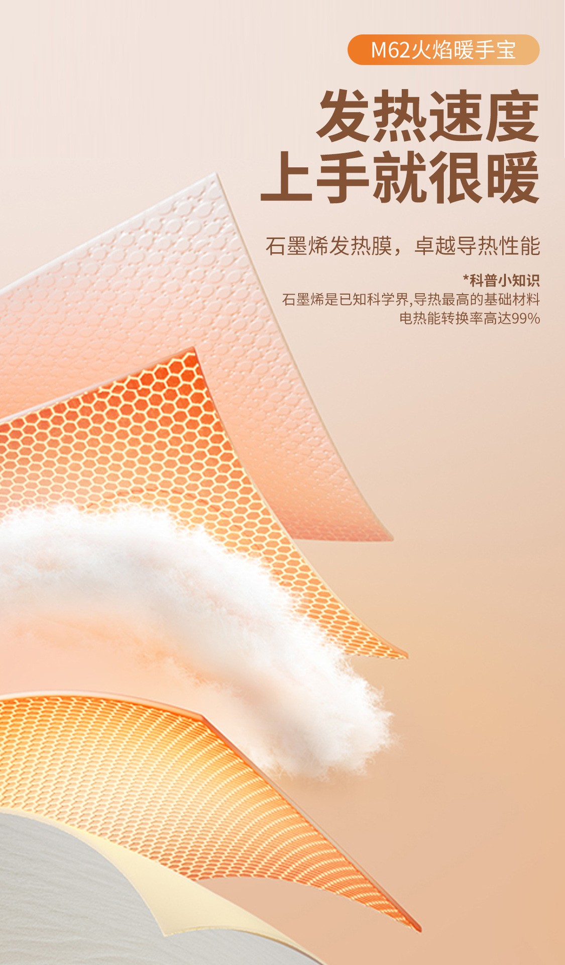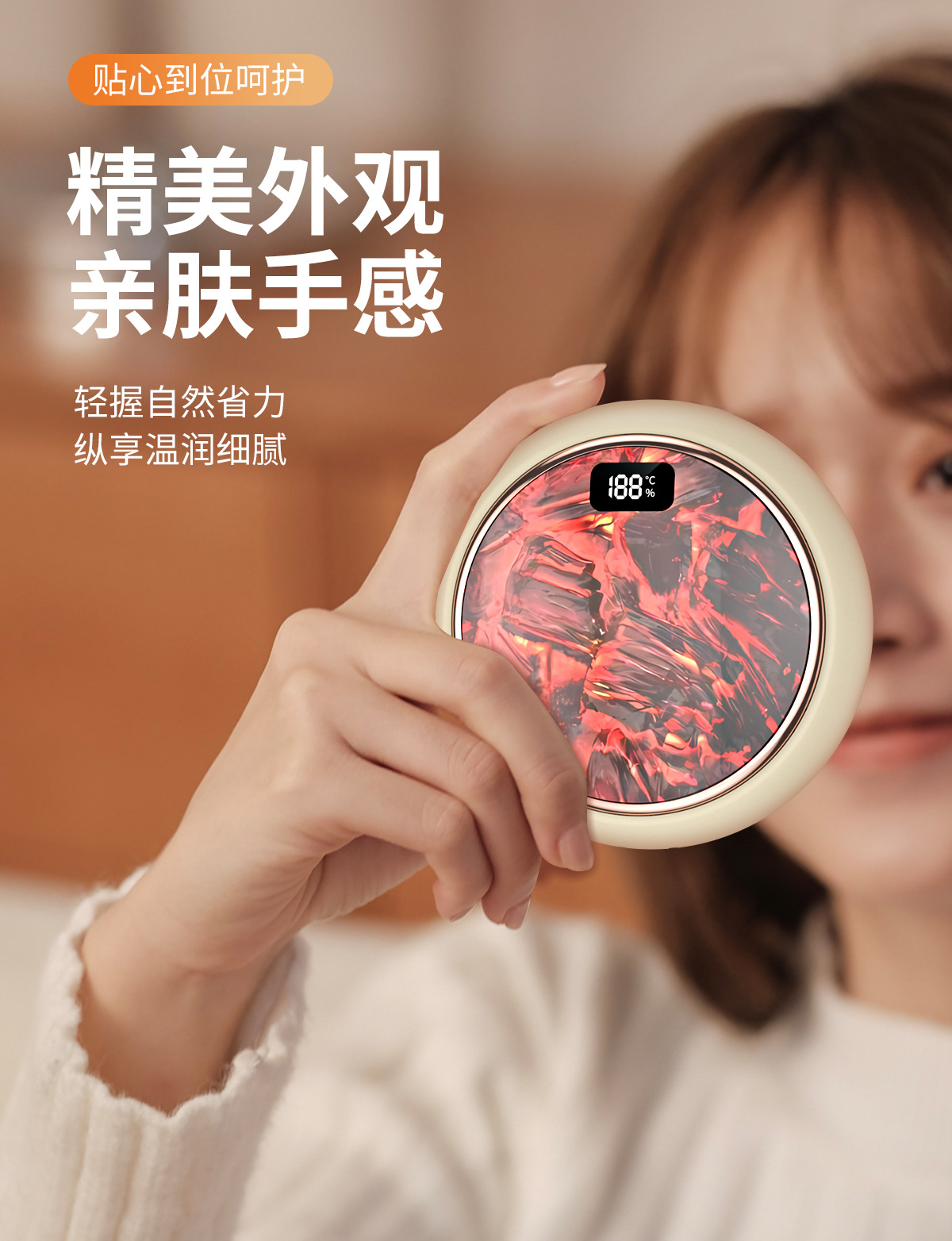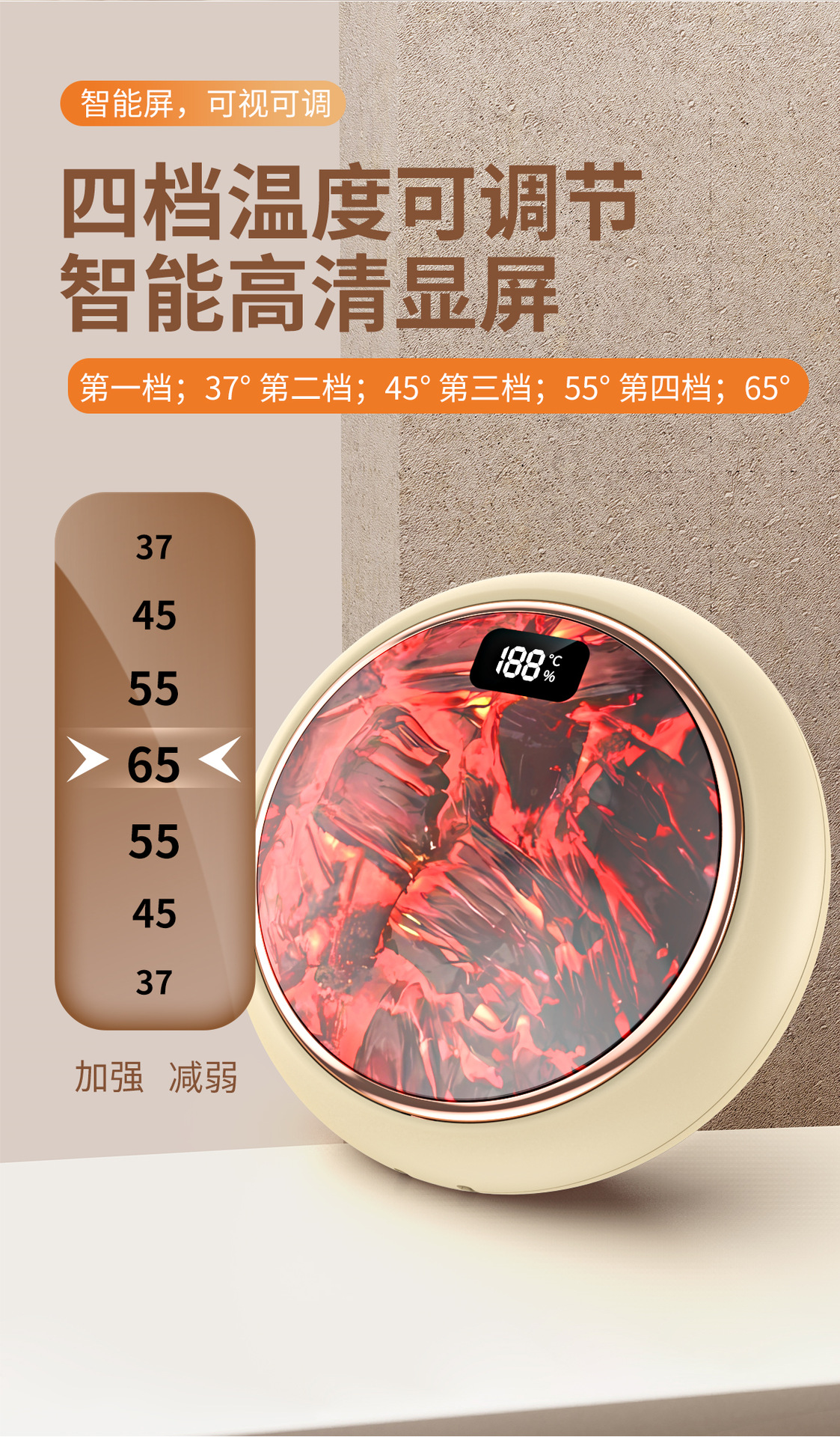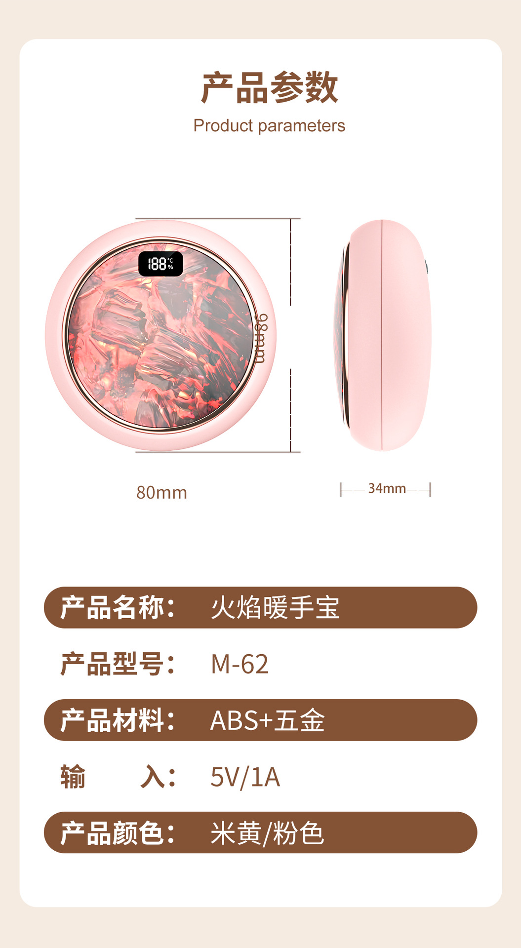 新款火焰炭火暖手寶迷你數顯暖寶寶新品禮品M62火焰山暖手寶