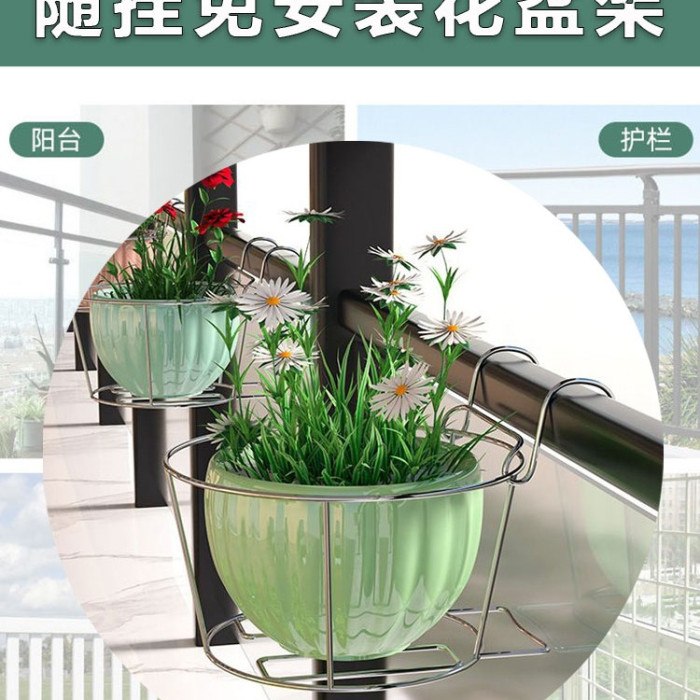 不鏽鋼吊蘭懸掛架家用陽台欄桿花盆掛籃護欄窗台綠蘿置物架花架子