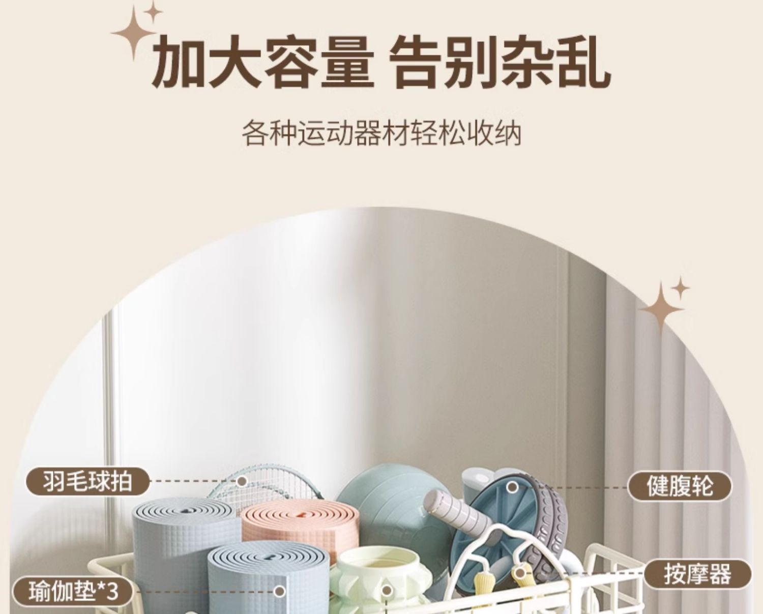 瑜珈墊收納筐家用健身運動器材球類收納筒放啞鈴羽毛球夾縫置物架