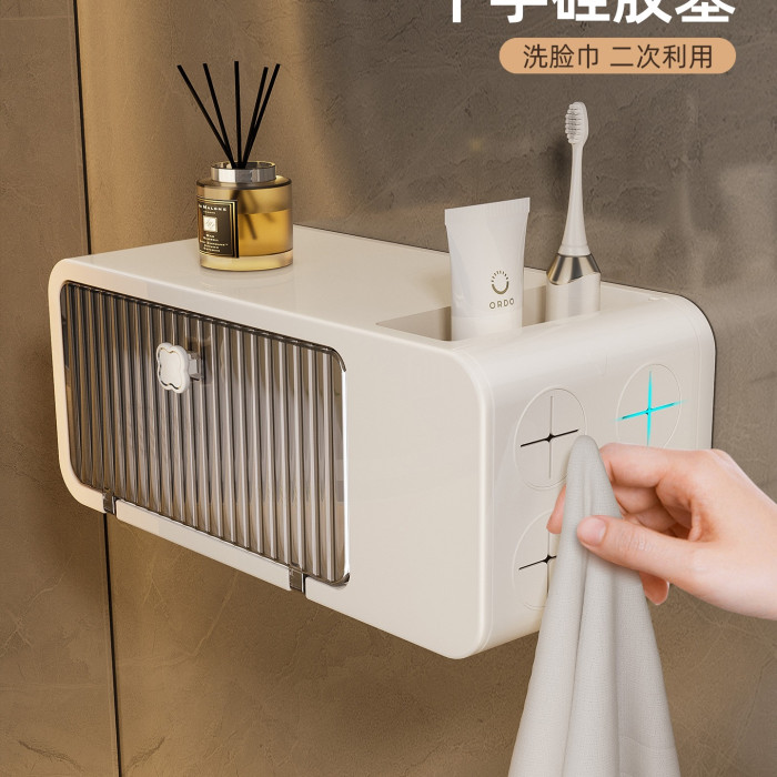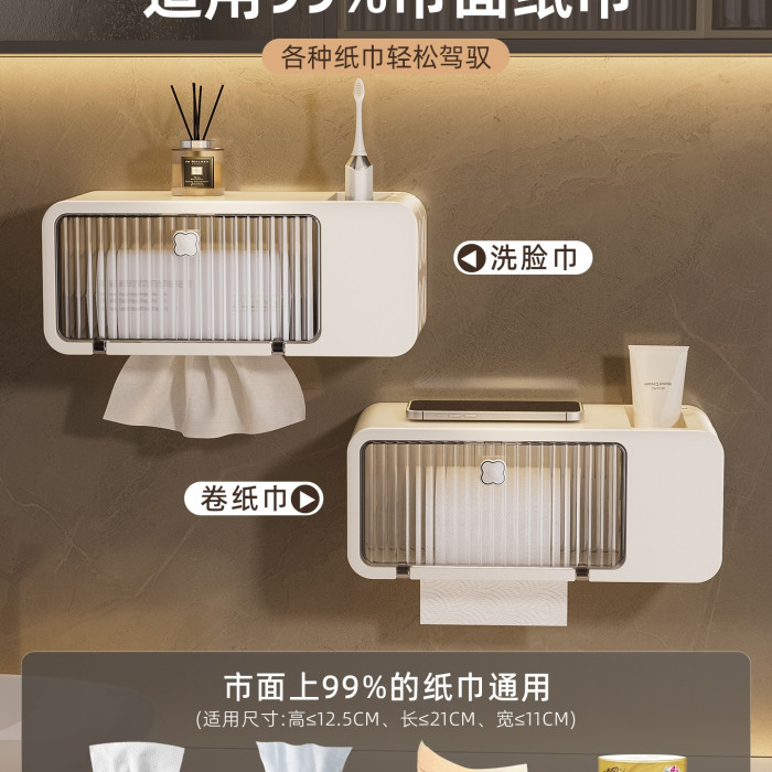 洗臉巾收納盒壁掛式一次性潔面紙巾衛生間厠所抽紙盒化妝品置物架