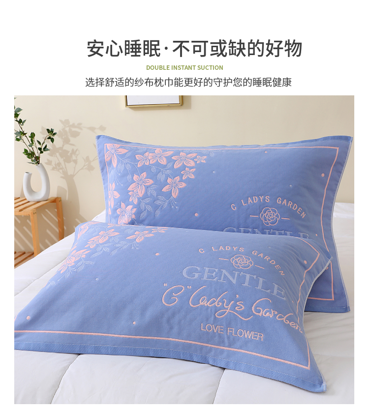 【新款枕巾】加厚細紗純棉枕巾紫色綠色小清新成人情侶紗布枕頭巾