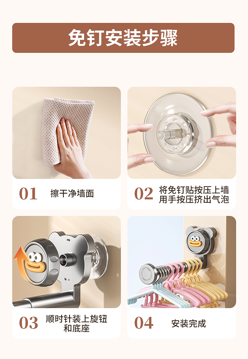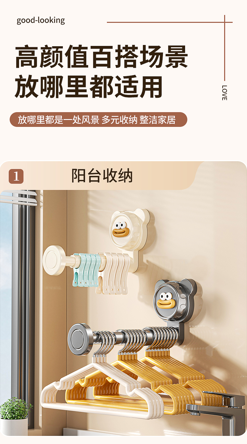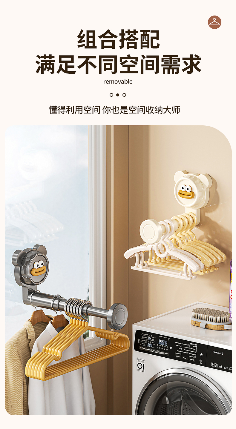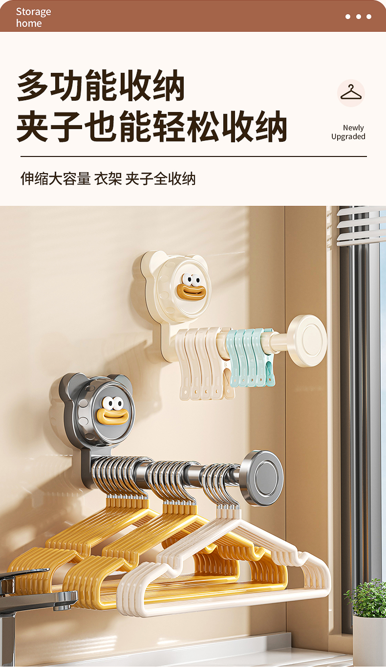 免打孔吸盤可伸縮衣架收納壁掛式收納架多功能衣櫃門臥室後掛衣鉤