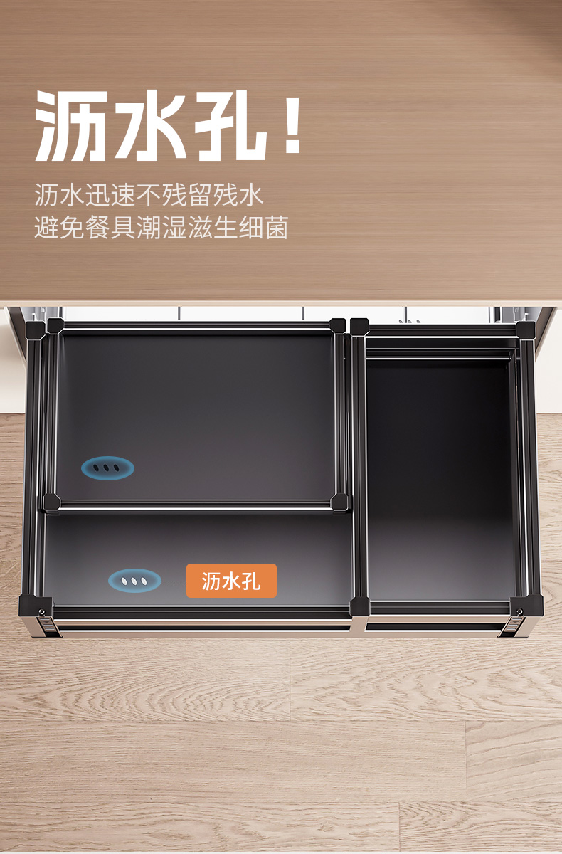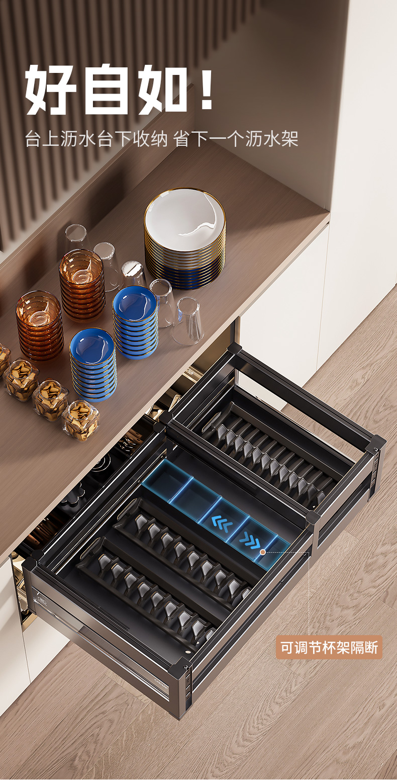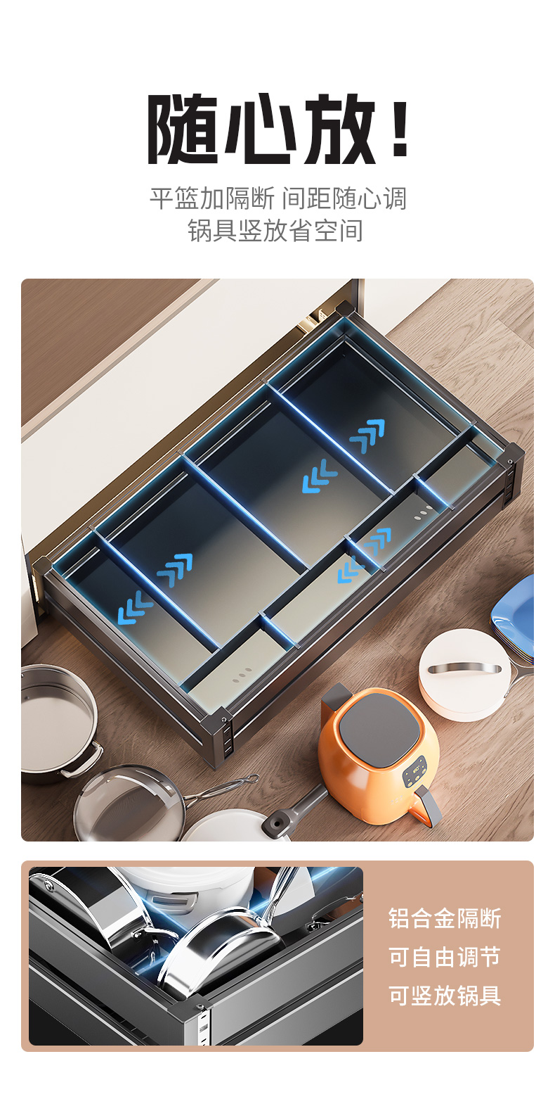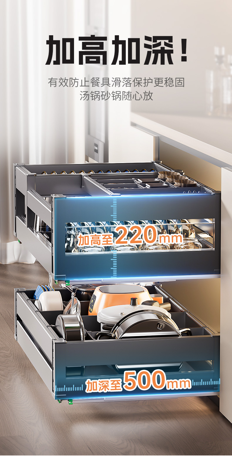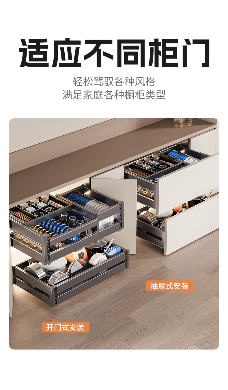 2025新款拉籃廚房櫥櫃碗籃雙層抽屜式太空鋁碗櫃抽拉式廚櫃碗碟架
