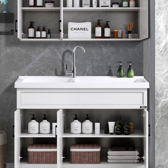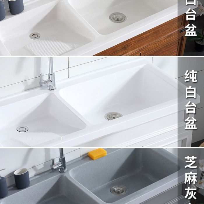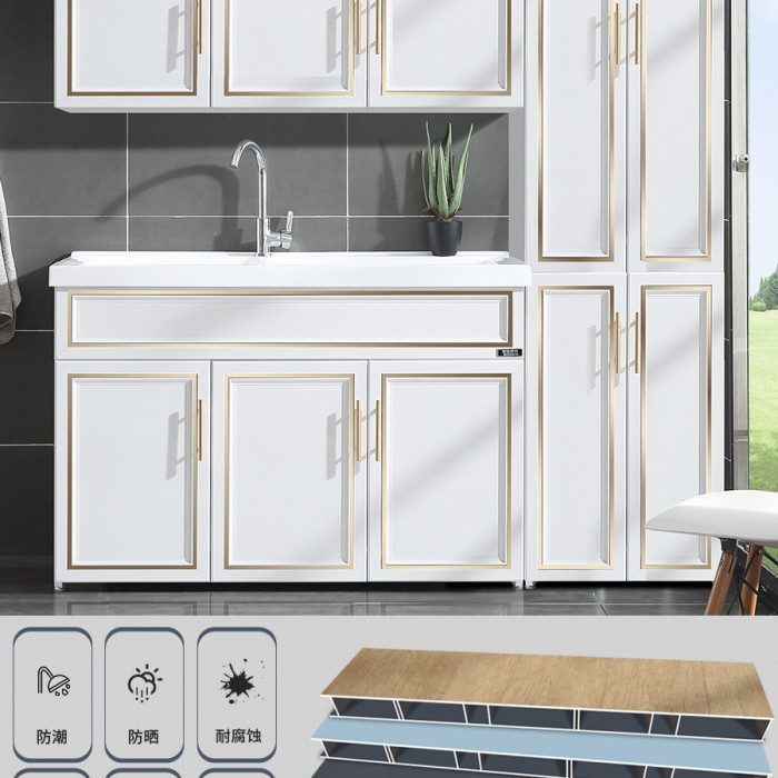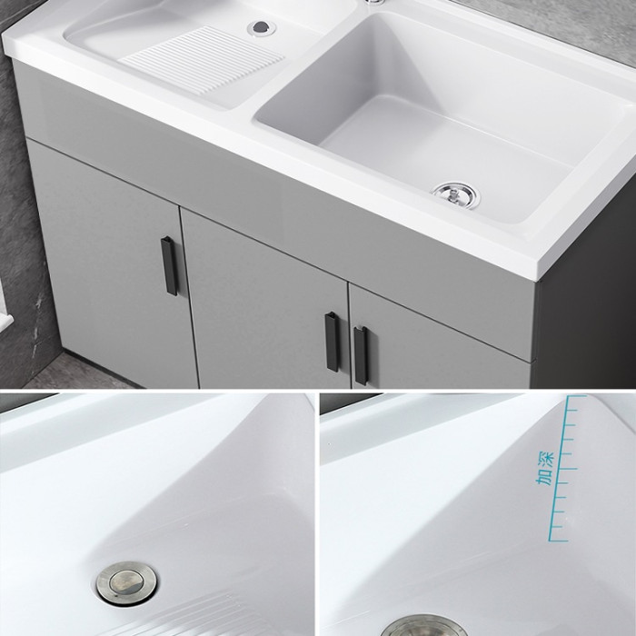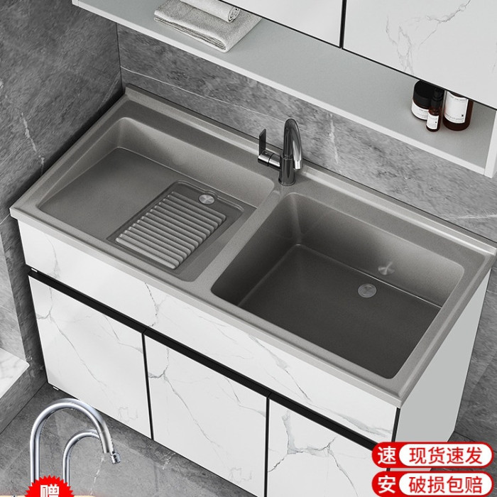 洗衣櫃一體雙盆人造石英石洗衣池帶搓板陽台太空鋁浴室櫃組合定