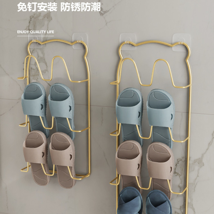 浴室拖鞋架免打孔壁掛式衛生間收納厠所壁掛掛架瀝水架子絹花