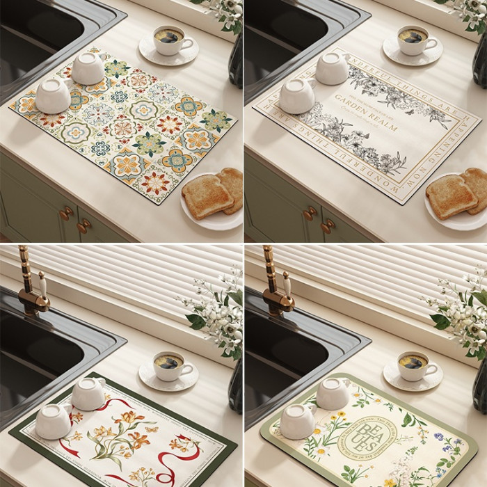 矽藻泥瀝水墊廚房餐具碗盤乾燥控水墊防水防滑免洗隔熱台面吸水墊
