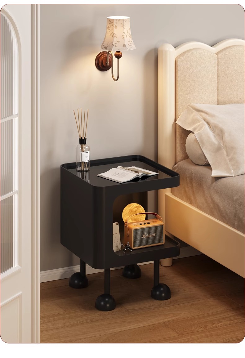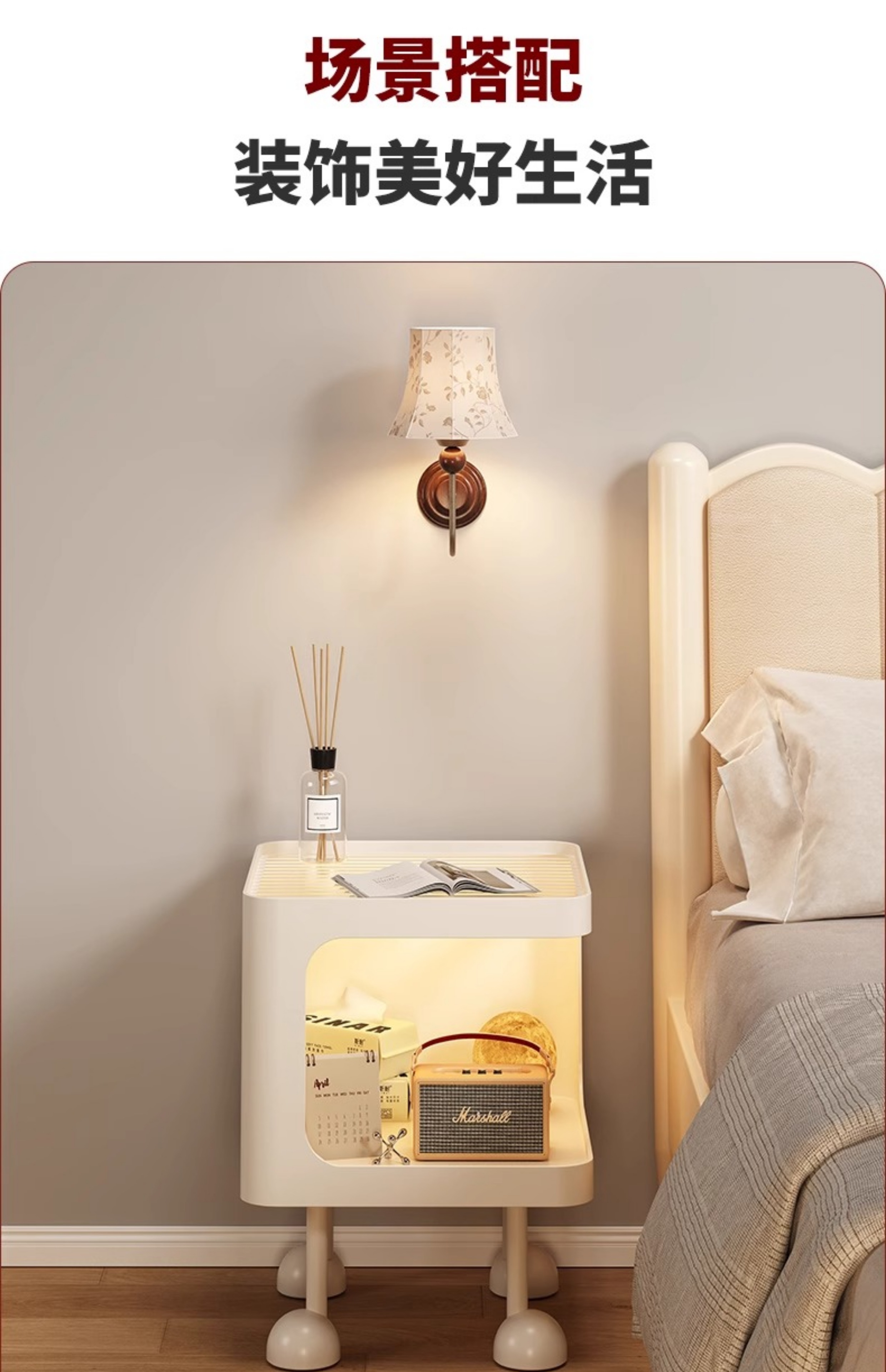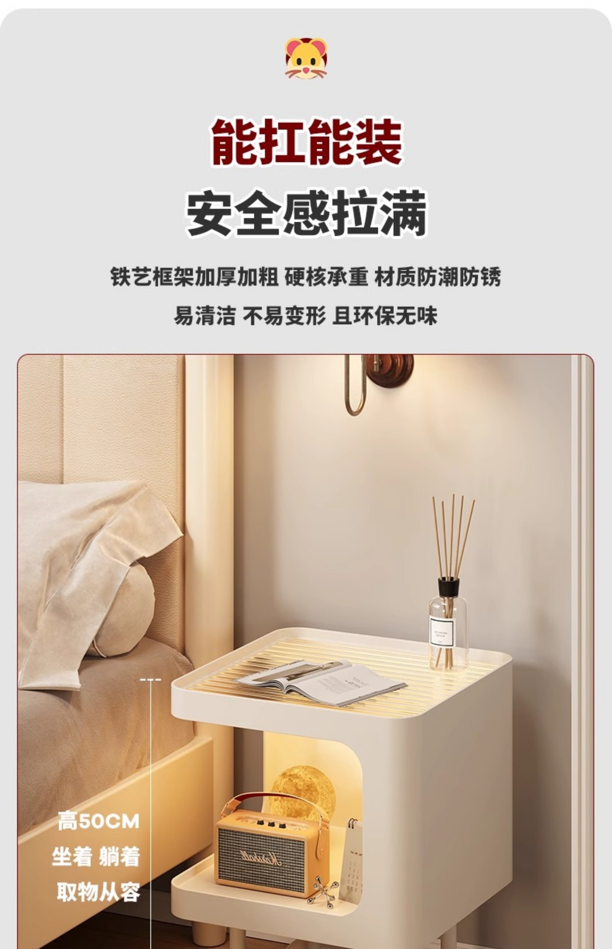奶油風床頭櫃小型帶燈家用鐵藝臥室置物架2025款設計感床頭小邊幾