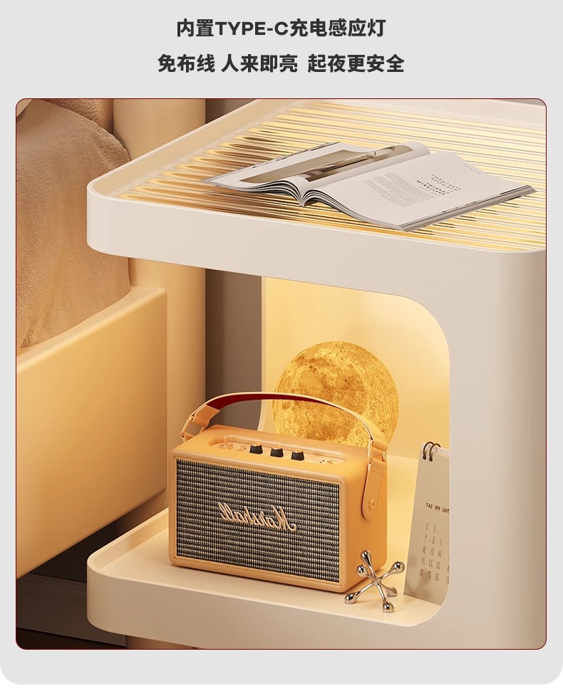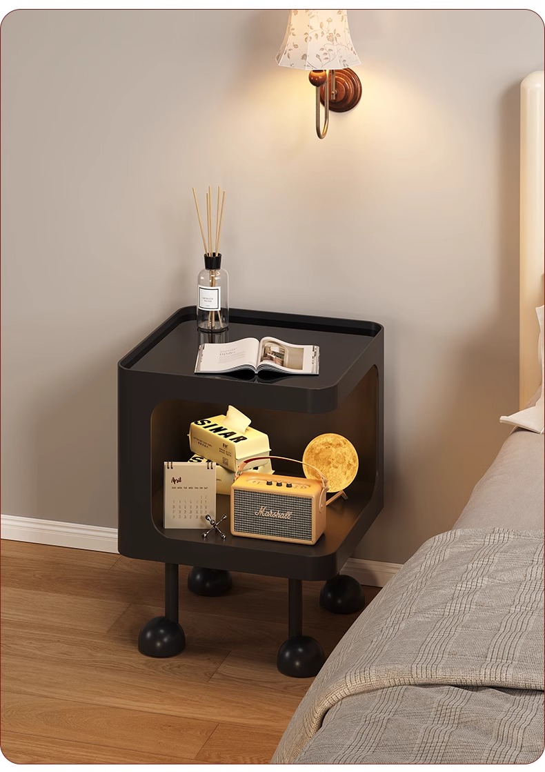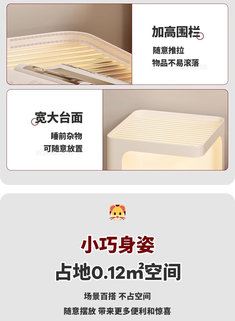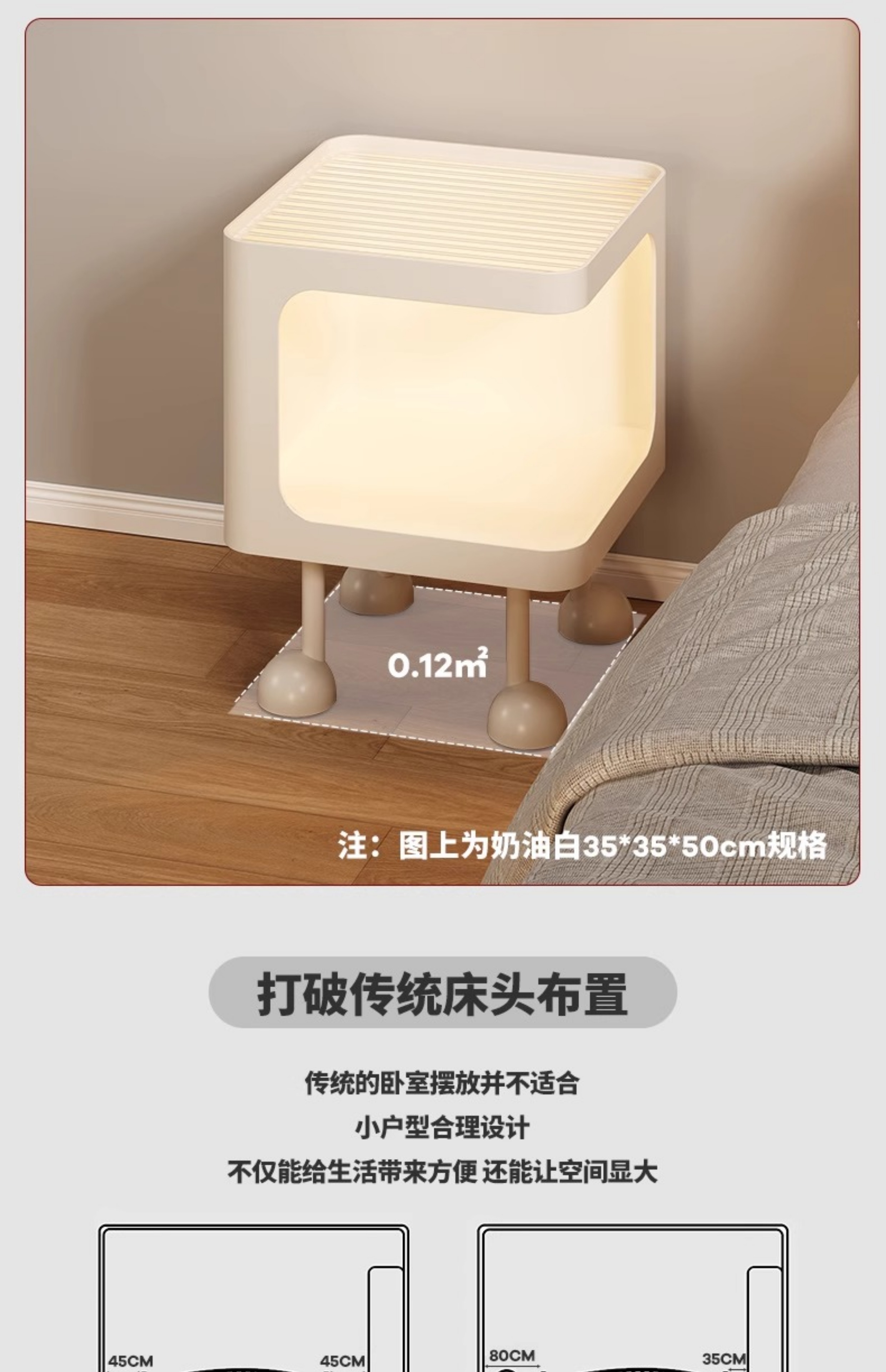 奶油風床頭櫃小型帶燈家用鐵藝臥室置物架2025款設計感床頭小邊幾