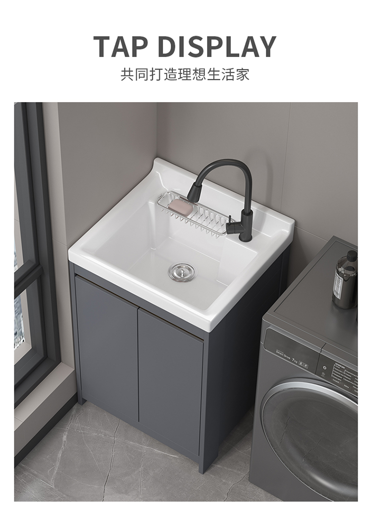 加大加深洗衣盆陽台洗衣池一體盆太空鋁落地櫃洗衣盆櫃陶瓷洗手盆