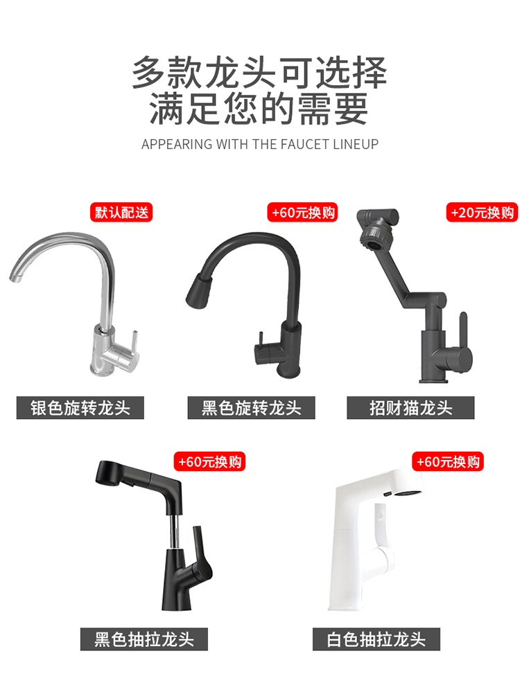 | 顔色 | 白色60深盆+鋁櫃+下水+抽拉龍頭 |
