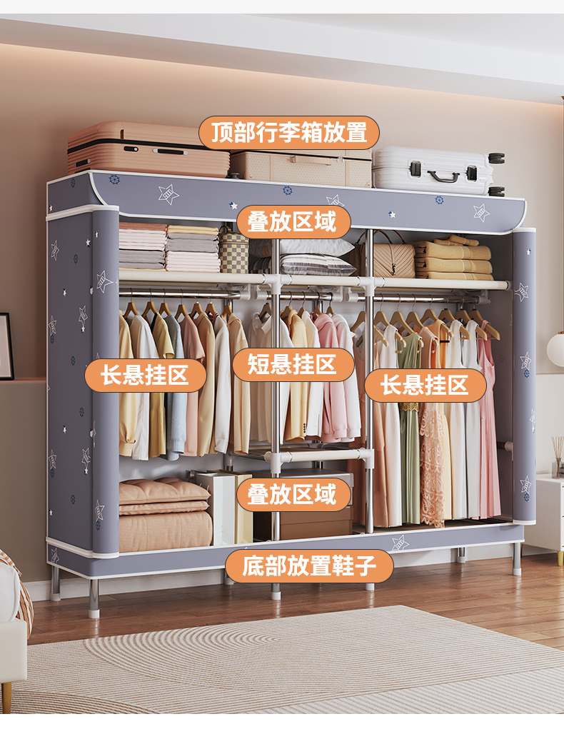 布衣櫃全封閉拉鍊單人加粗加固結實耐用全掛式出租房用組裝牛津布