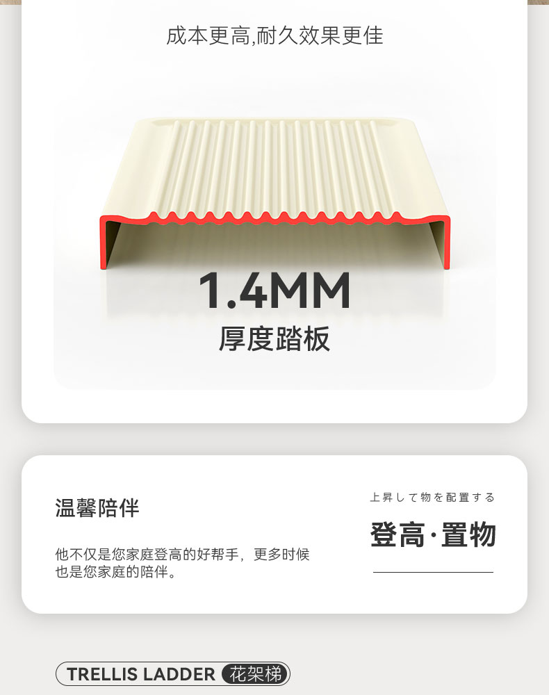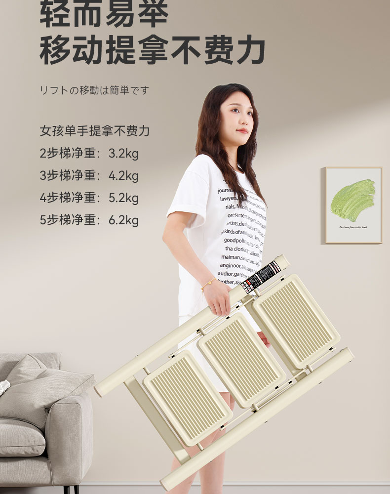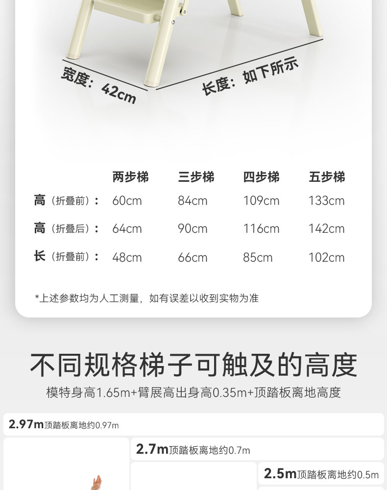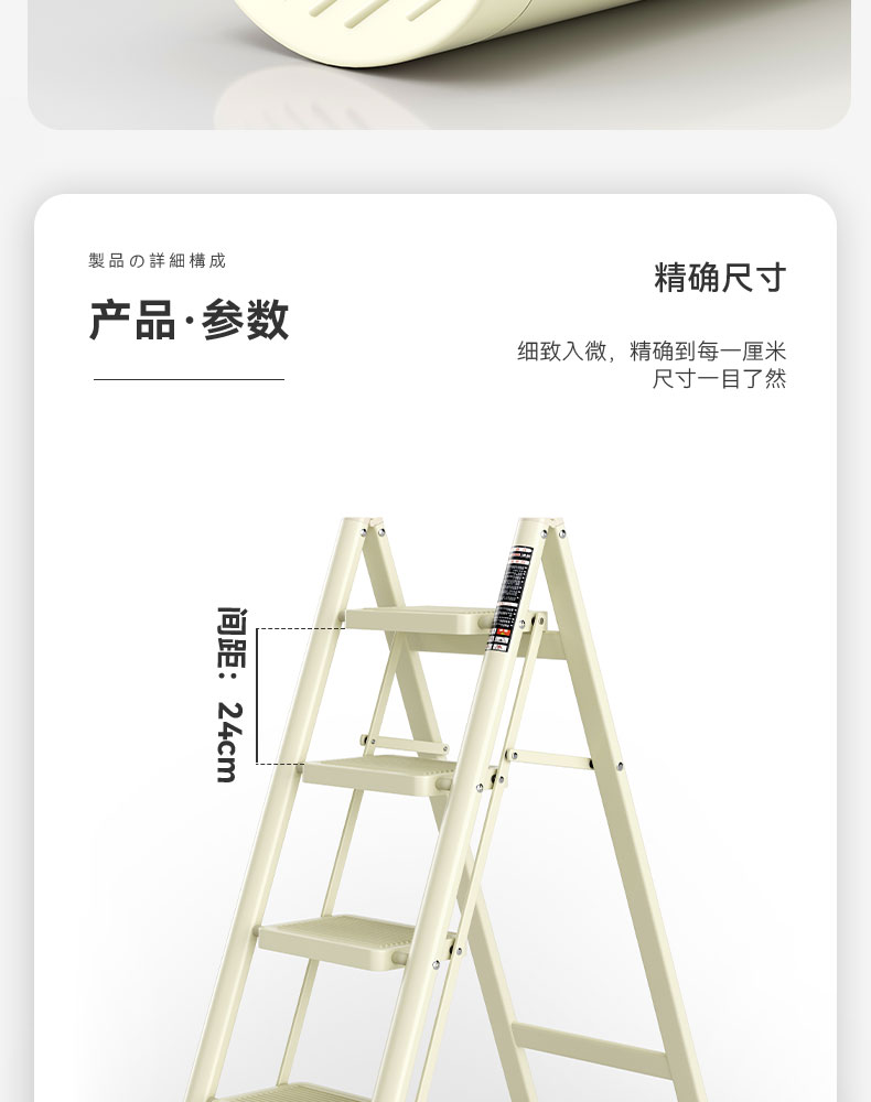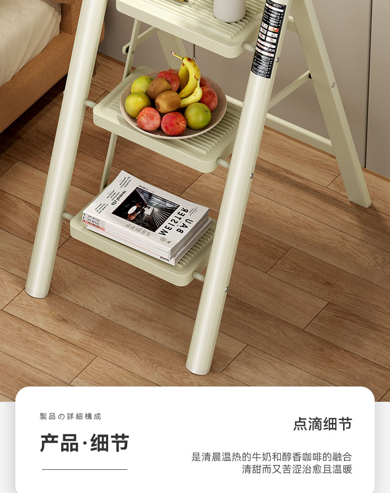 | 踏板數 | 【加厚碳鋼】五步梯-暖白色防滑踏板☆穩固承重-多功能折曡梯 |