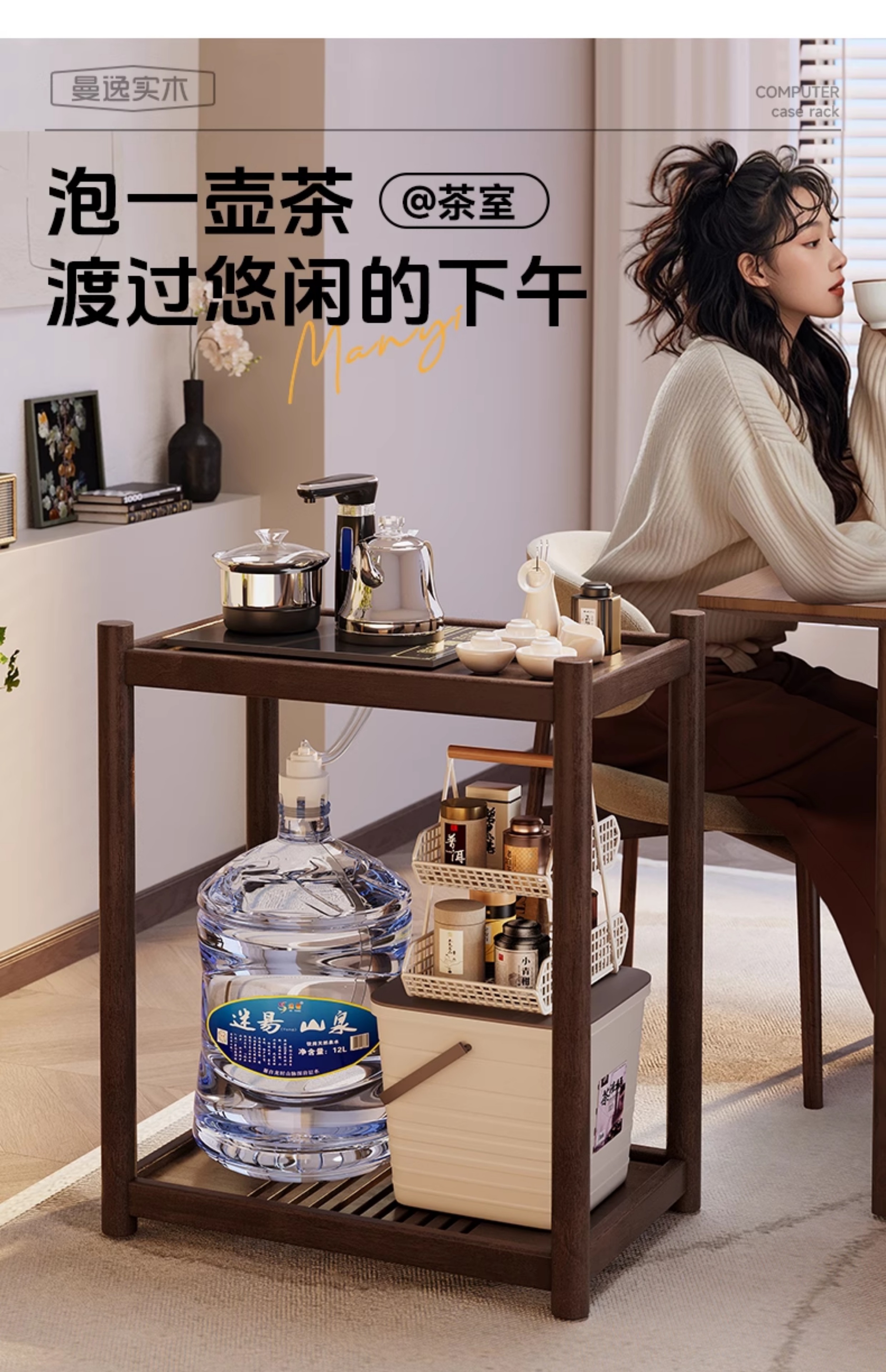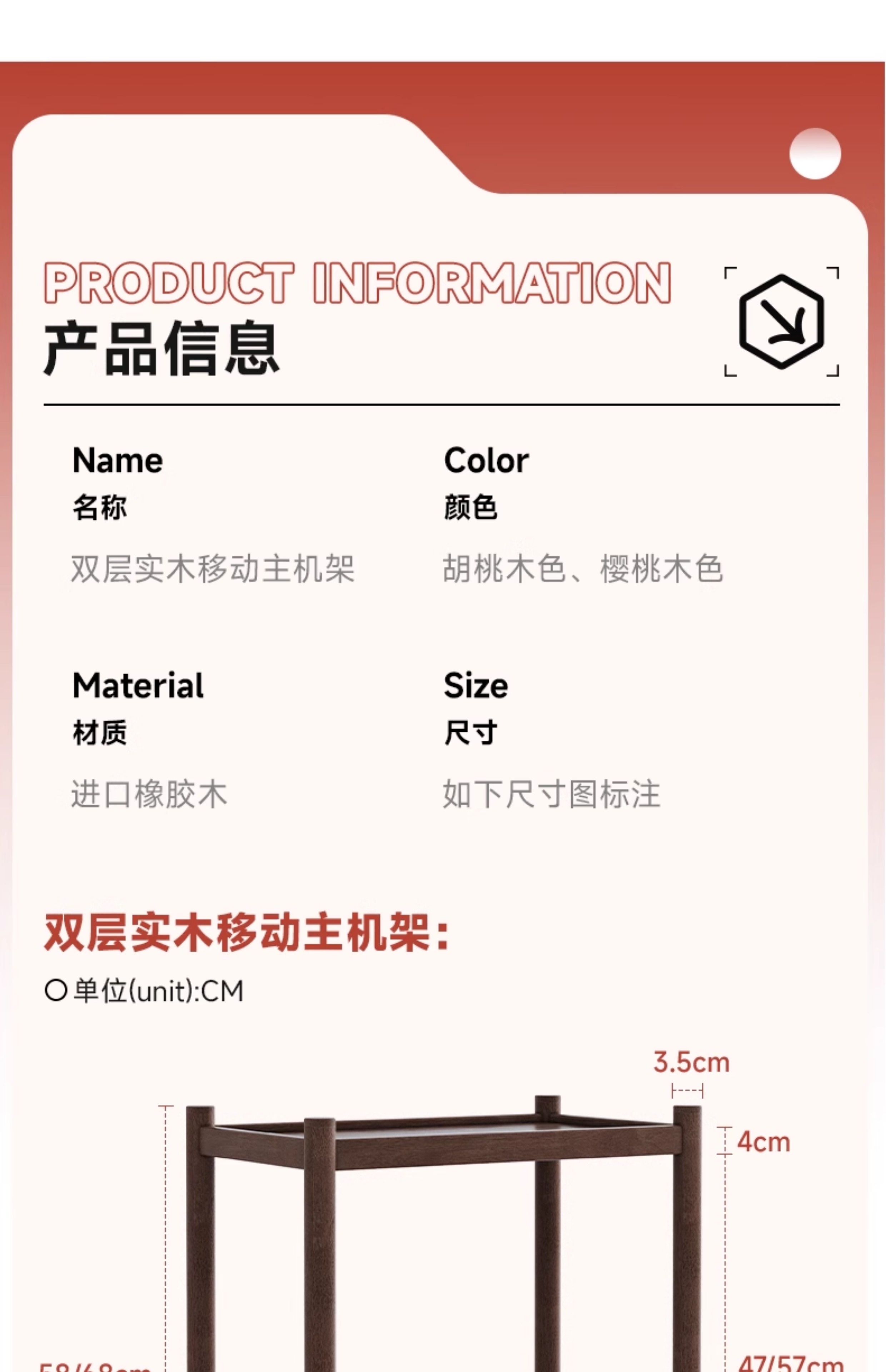 | 顔色 | 櫻桃木色小號50*30*58cm【進口橡膠木 可移動 雙層置物】 |