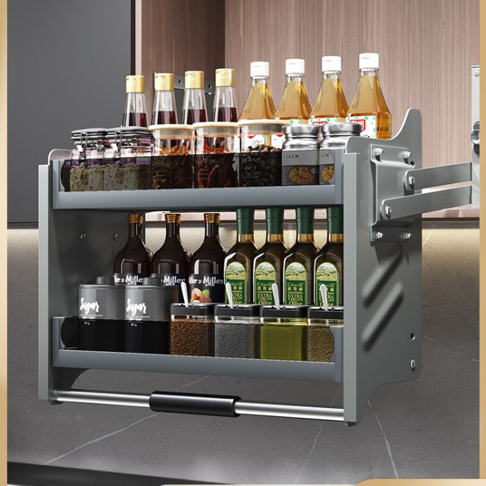 | 規格 | 雙層-下拉式-【900櫃體】經典款-鋁合金星耀黑-可調寬度 -三段緩沖 |