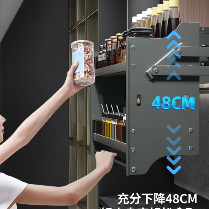 吊櫃升降拉籃廚房櫥櫃下拉緩沖阻尼開門式置物架調味料拉籃