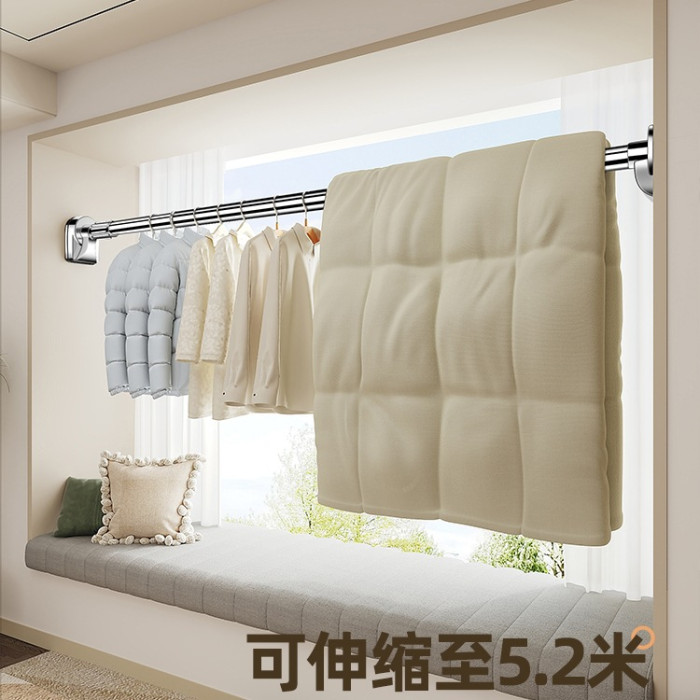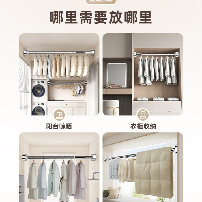 免打孔伸縮桿陽台窗簾撐桿不鏽鋼管子晾衣桿防風固定單個裝晾衣架