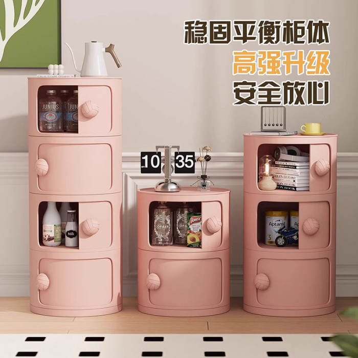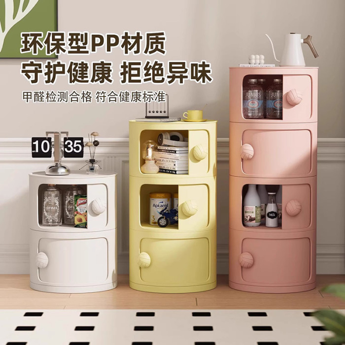 奶油風床頭櫃家用臥室置物架2025可愛創意收納櫃小型圓形櫃子