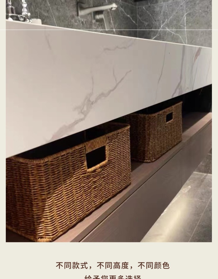 衛生間編織收納筐浴室櫃下雜物收納籃仿藤編中古風儲物籃子可定