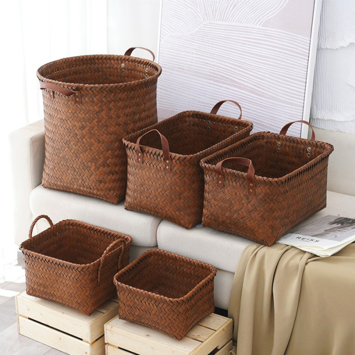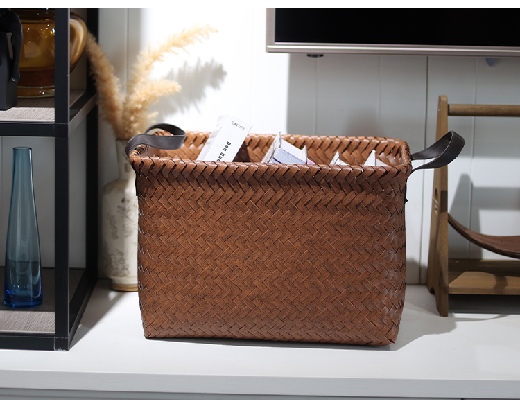 美式收納筐手工防水復古髒衣服籃臥室衣櫃仿藤編織零食玩具收納盒