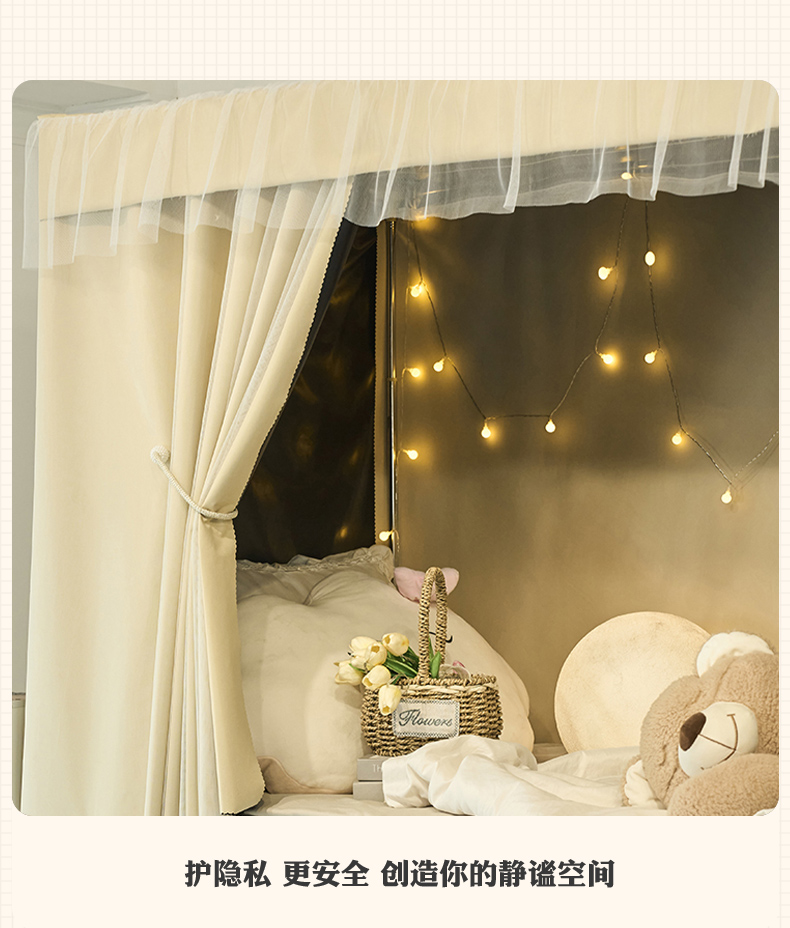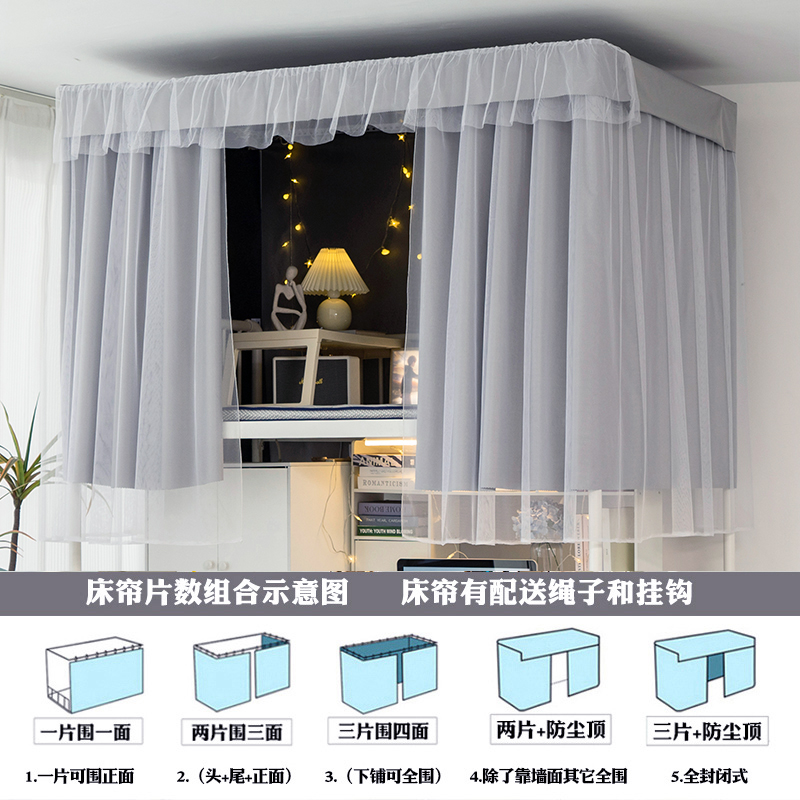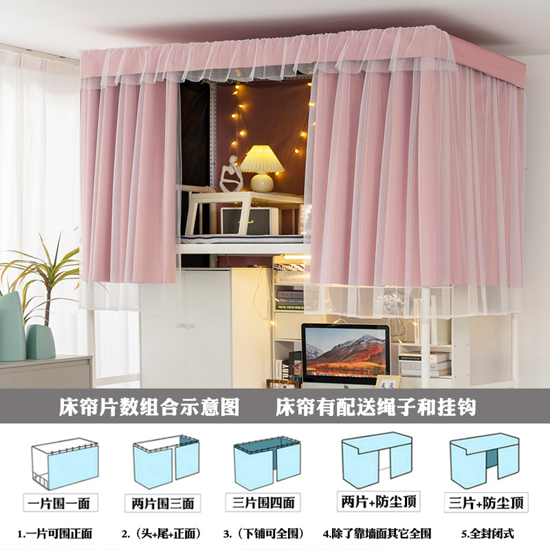 大學宿捨床簾上鋪純色公主風窗簾學生寢室下鋪女強遮光加厚遮擋簾