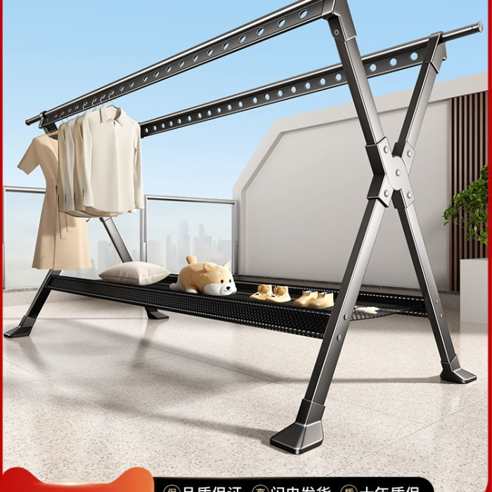 晾衣架陽台家用落地折曡曬衣架涼衣桿室內外掛衣服伸縮曬被子