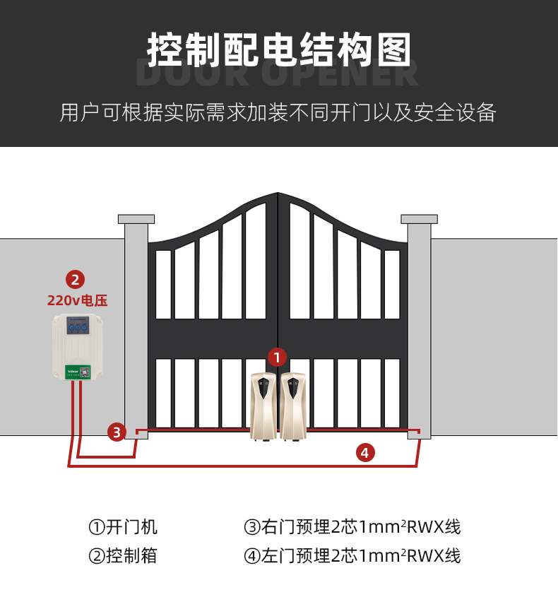 八字遙控平開別墅庭院學校農村大門用自動對開電機開門機